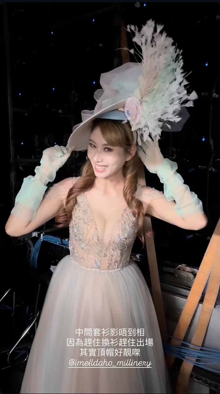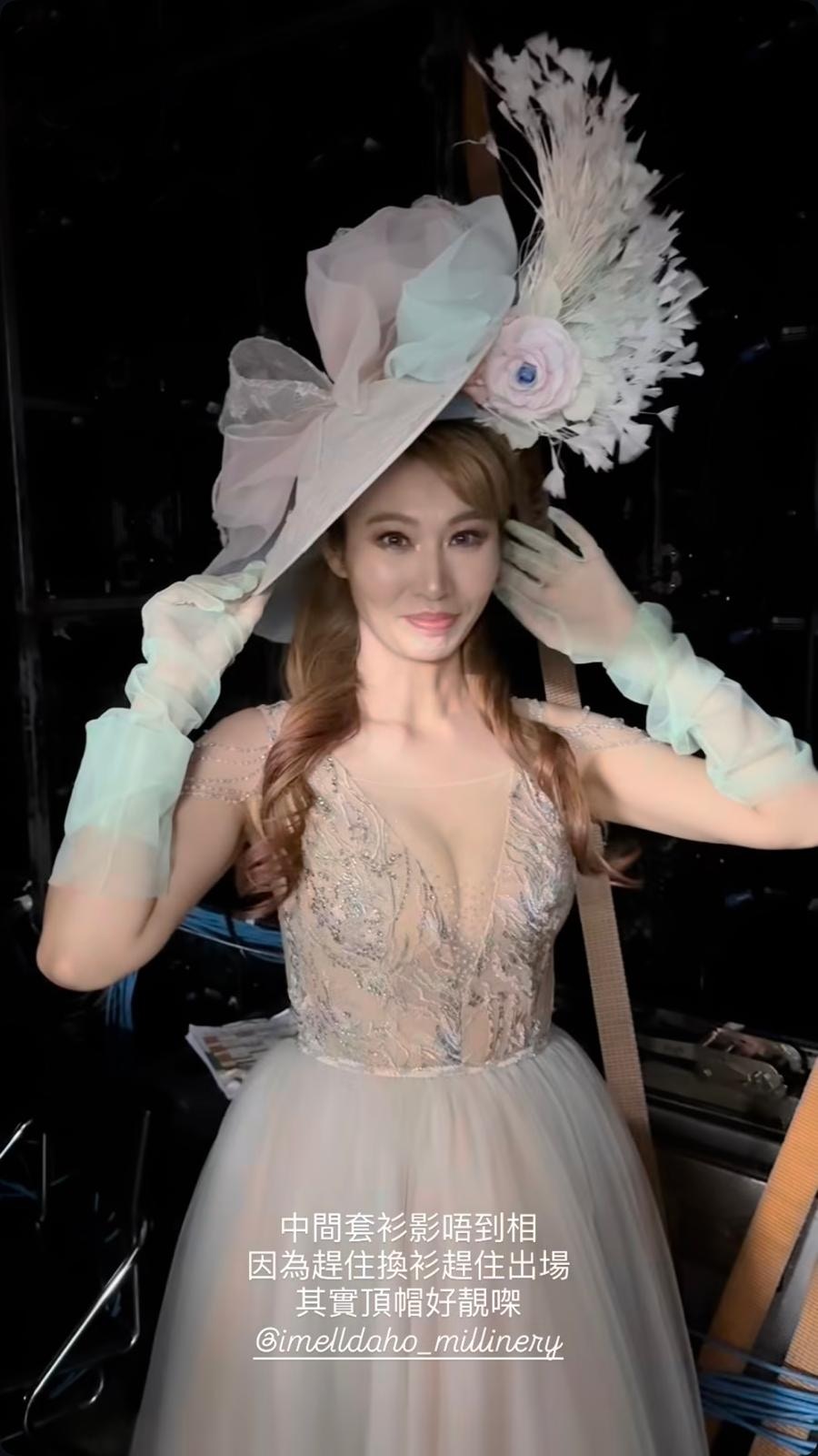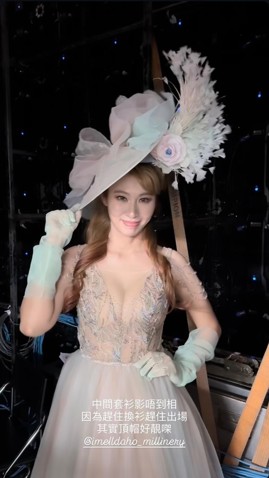 莊韻澄於時裝騷上再披婚紗,低胸剪裁谷盡事業線。(莊韻澄IG限時動態截圖)