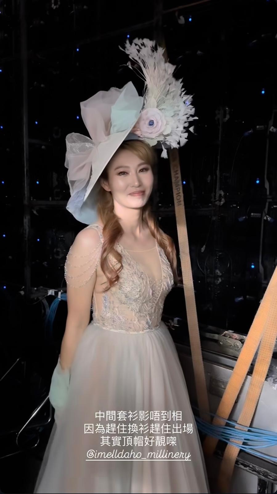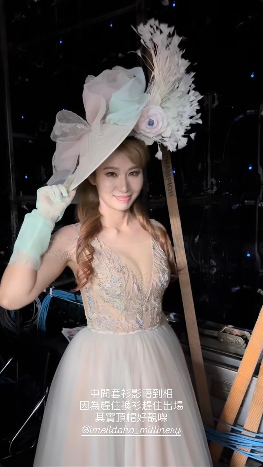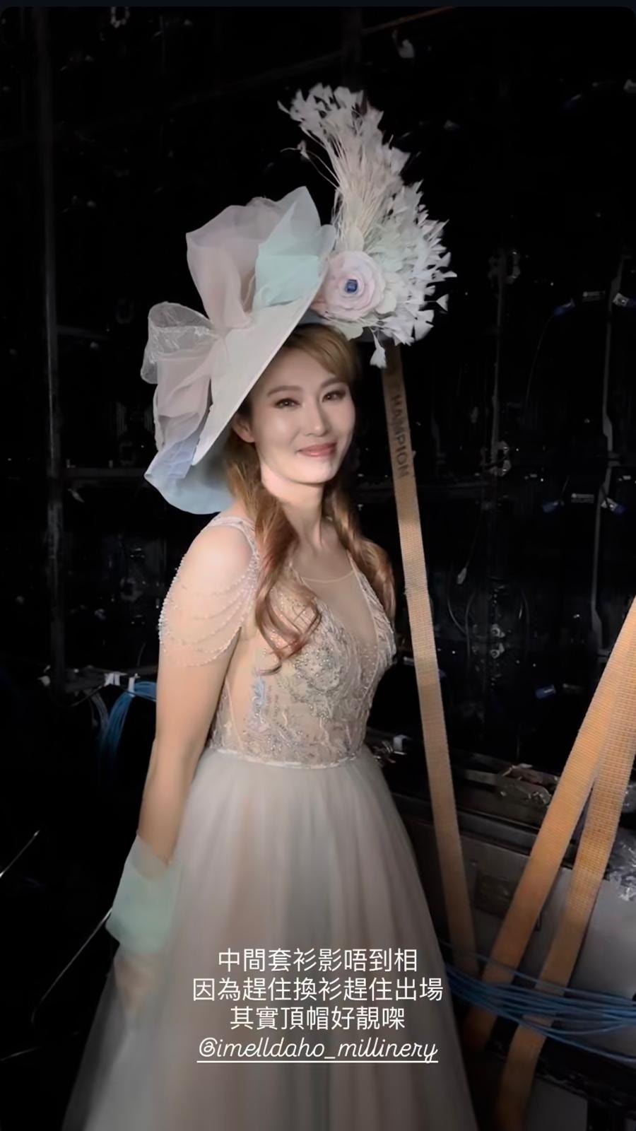 莊韻澄於時裝騷上再披婚紗,低胸剪裁谷盡事業線。(莊韻澄IG限時動態截圖)