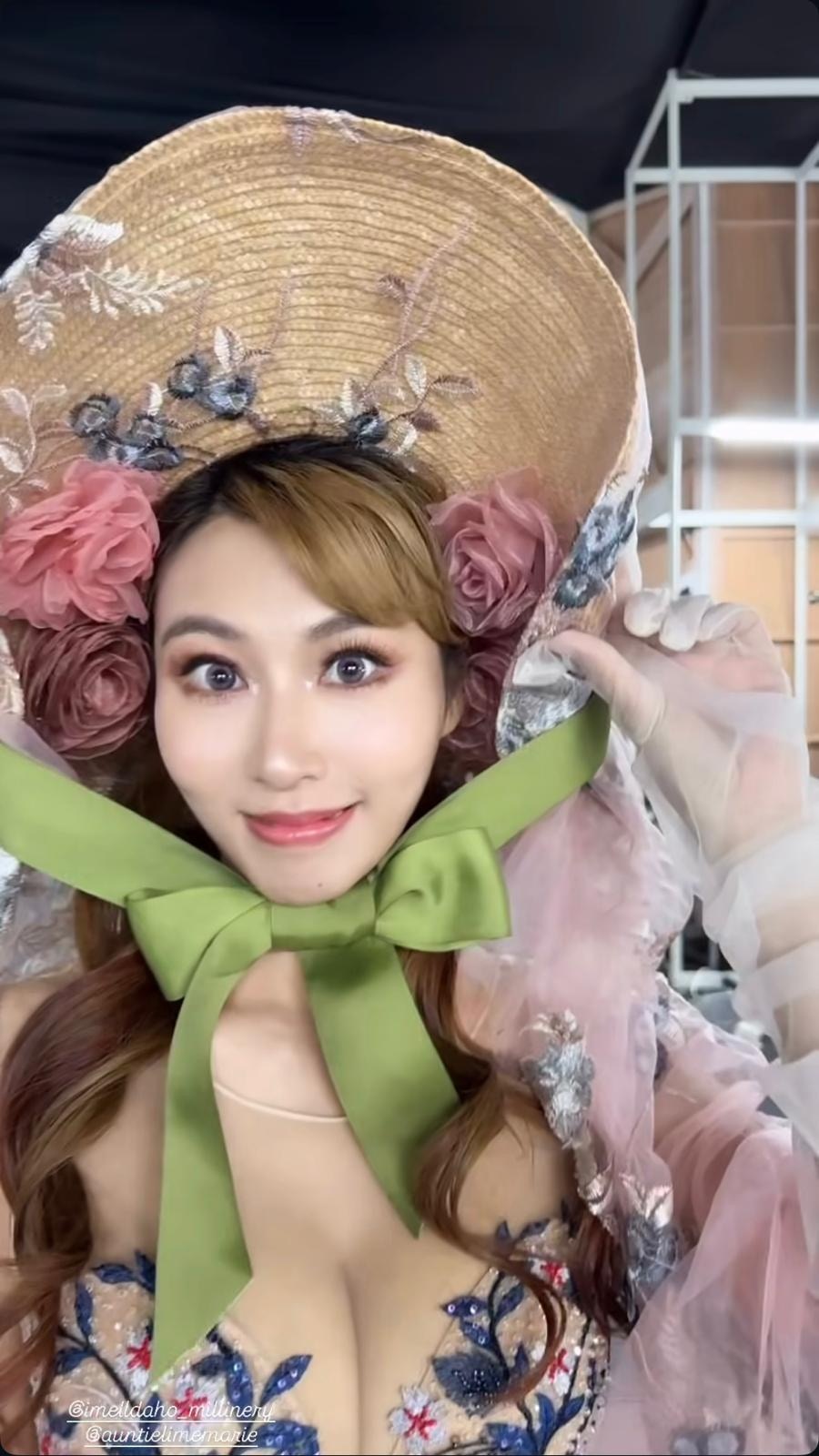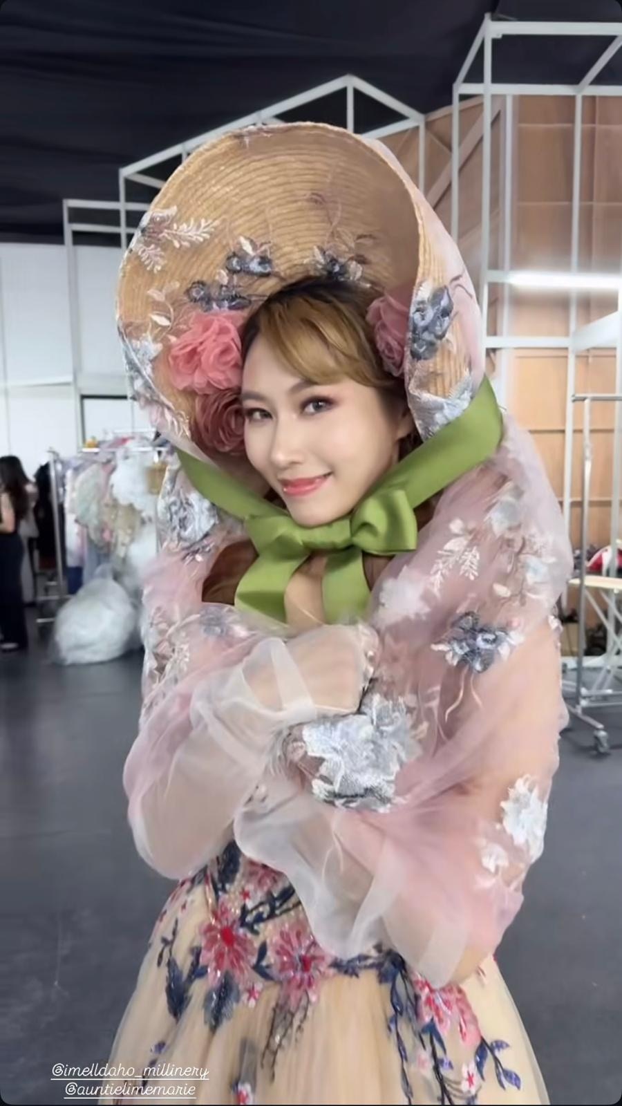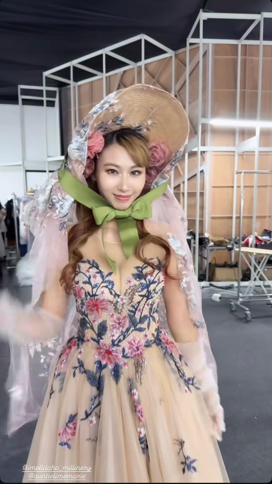 莊韻澄於社交媒體上分享時裝騷造型花絮,身穿兩套粉色透視繡花婚紗,低胸剪裁讓澎湃上圍表露無遺!儘管莊韻澄頭上戴有設計細節層次豐富的花檐帽,但胸前6吋事業線仍更吸引影迷粉絲眼球,令人目光不自覺隨直線向下移動!
