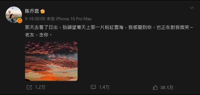 陳喬恩作為喬任梁的圈中摯友,已經連續第9年以相同方式紀念他。(微博圖片)