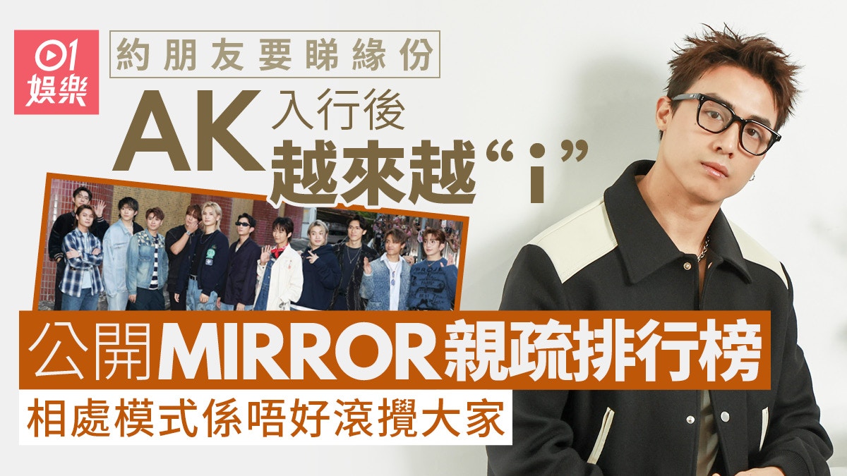 談到見最多的兄弟 ,一定非MIRROR莫屬,如果「十隻手指有長短」的話,11位兄弟亦有「親疏排行榜」,AK說:「講真,我覺得大家關係差不多,close與否係話題中唔中嘅分別,而家我唔會因為話題而特地搵嘢講,因為你想咁做,人哋未必想聽,呢個都係呢幾年學識,我哋12個一個相處模式同默契都係唔好滾攪大家。唔係小心翼翼,係對大家嘅尊重,同埋都明白平時無咩自己時間,有啲嘢工作見到有嘢會傾, 如果再有時間,我相信都係想獨處,我係咁諗,對方都應該係咁諗。」
