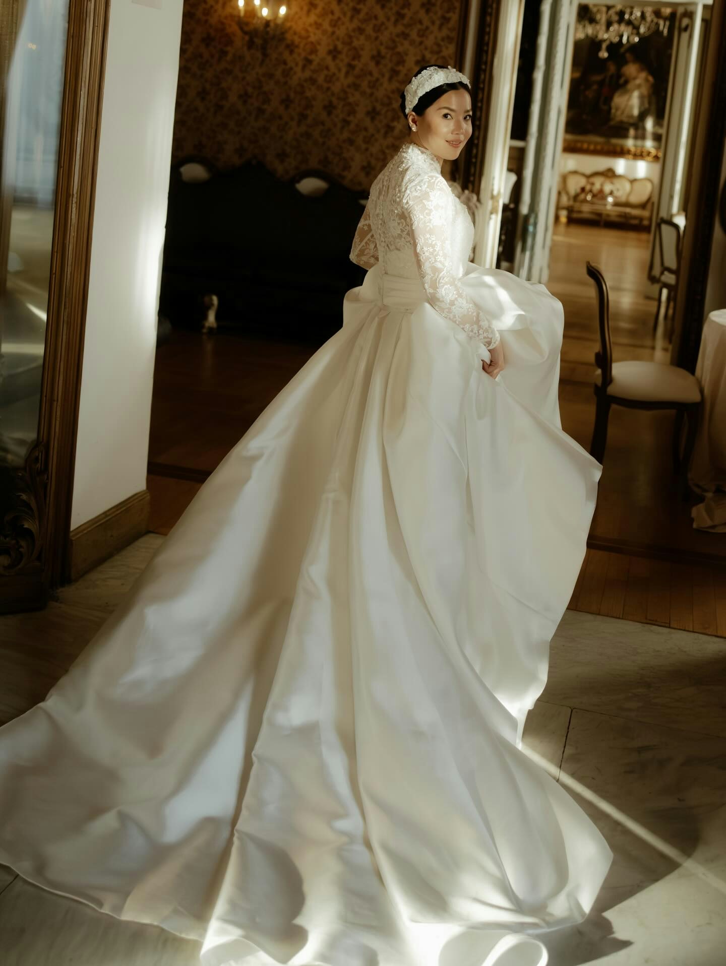 多張照片都洋溢溫馨感覺,劉萬儀與外籍丈夫情深對望,雙方戴上婚戒並擁吻。她透露婚紗設計靈感取自荷里活經典影星 Grace Kelly,婚禮場地則曾為電影《羅馬假期》拍攝場地但佈置帶有《魔戒》奇幻風格。