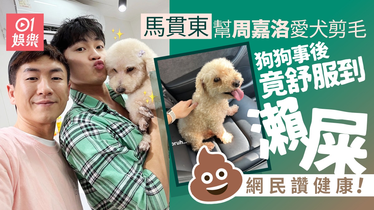 近日馬貫東幫阿佘的狗狗做寵物美容,不止剪毛時手勢純熟,對狗狗亦十分溫柔有愛,影片在網上瘋傳,相信他真正晉身寵物美容行業,肯定有大把明星客人捧場。之後馬貫東又幫《愛.回家》時期的好兄弟周嘉洛愛犬「棚棚」,採耳、剪毛、沖涼,而「棚棚」就是劇中的熊家第一代「啤啤」,馬貫東大讚「好耐冇見嘅棚棚,依然保持住俊朗嘅外型,健碩嘅身形」,仲忍唔住錫了「棚棚」,畫面治癒,不過太舒服的「棚棚」,轉頭已在車座上「瀨屎」,網民除了笑爆肚外,紛紛留言指狗狗糞便形狀,睇落相當健康。