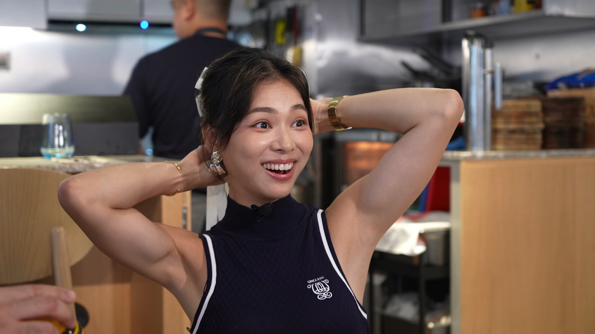 而近年經常擔任美食主播的廖慧儀,雖然每個節目都吃不停,但她勤做運動,身型沒有受美食影響,即使在今集《美食新聞報道》高舉雙手,都沒有「bye bye肉」,反而有結實的「老鼠仔」。