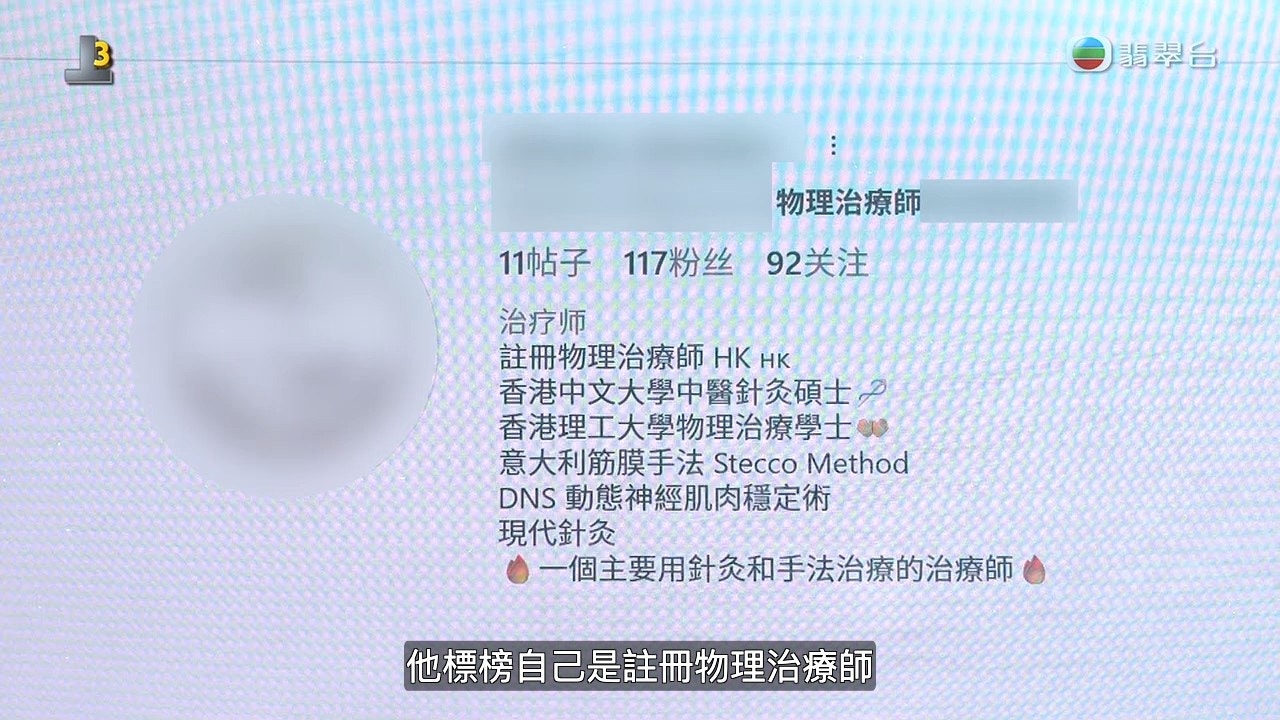 有關物理治療師社交帳號。(《東張西望》截圖)