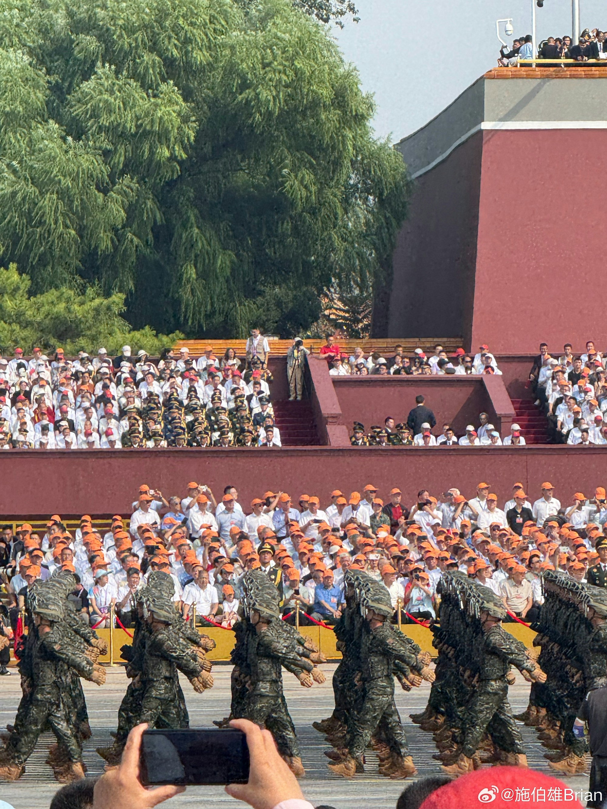 9月3日上午,紀念中國人民抗日戰爭暨世界反法西斯戰爭勝利80周年大會在北京天安門廣場隆重舉行。「百億富三代」施伯雄(Brian)與老婆吳千語(Kare ...