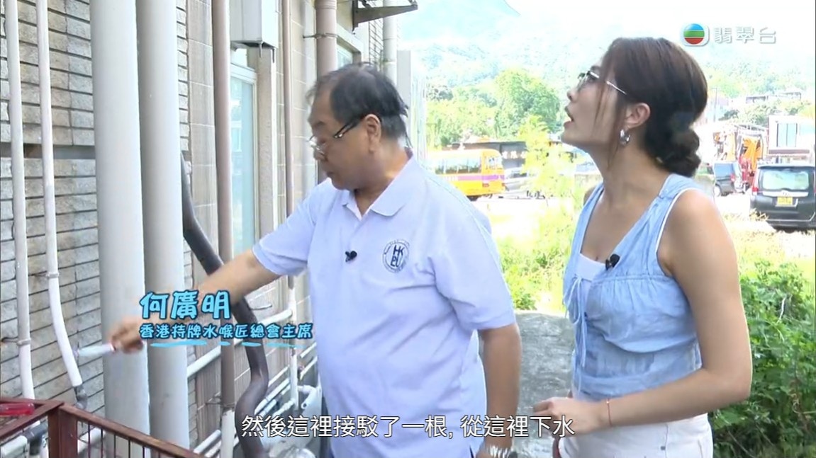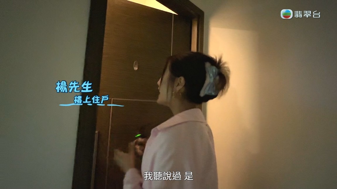 楊先生是樓上涉嫌偷水單位的住戶,梁敏巧問到他是否知道黃先生單位被偷水時,他表示知道有這一件事:「如果係駁咗喺地底,其實起屋嘅時候應該做咗㗎喇。」至於被問到排水喉時,他則指是業主做,強調:「總之我冇搞過,一定唔關我事。」