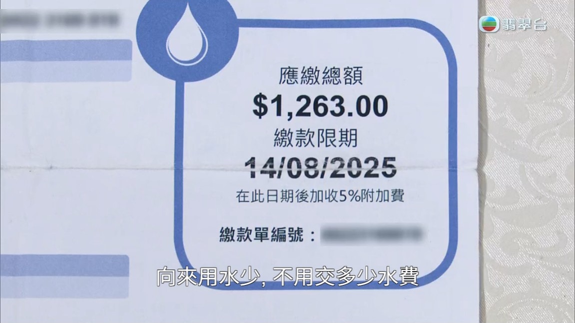 黃先生去年10月底買入屯門一村屋中層單位,但7月時突然收到一封過千元水費的帳單,黃先生表示自己一星期只是回來一至兩次,加上用水量並不是很多,他說:「冇理由千幾元,唔通屋企水浸咩?有乜理由啲水費咁勁㗎?我屋企又唔係開魚池。」黃先生指自己很少洗衣做飯,所以馬上檢查家中有沒有漏水問題。