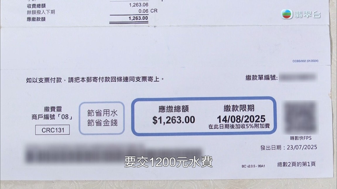 7月時突然收到一封過千元水費的帳單。(節目截圖)