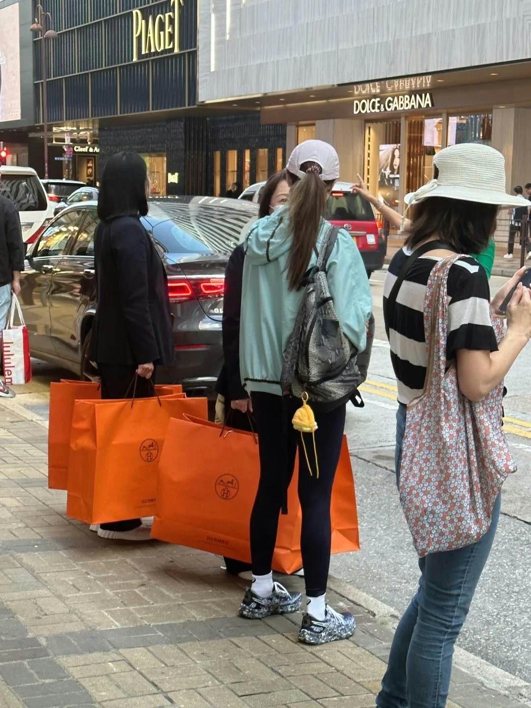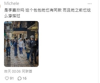 相中可見,該名女星戴上cap帽束起馬尾,身穿鬆身外套配瑜珈褲孭住背囊,打扮相當樸素casual,有兩名女士在她身旁拿住因大袋Hermès戰利品,明顯是替她拿着,一看便知財力驚人,相當富貴。由於有網民於評論區表示在同日遇見李嘉欣,亦有人在較早前遇過她穿着類似的服裝以及用同一個背囊,並貼出照片,因而相信相中人就是李嘉欣。不少網民的焦點竟落在該名女星的髮質之上,指她髮質一般,但有見過李嘉欣真人的網民就為她平反指應是拍攝問題,她真人的髮質很ok。