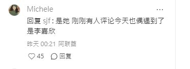 日前有網民在街頭偶遇疑似李嘉欣並把拍到她的生圖放到社交網上分享,以「猜猜是哪個港星」為標題,發文寫道:「今天海港城偶遇某top級港星 從身邊擦肩而過 想過去拍個正面 感覺不是很禮貌,就撤了」。由於相中只影到李嘉欣的背面,加上博主並沒有開名,即惹來不少網民競猜相中人是誰。