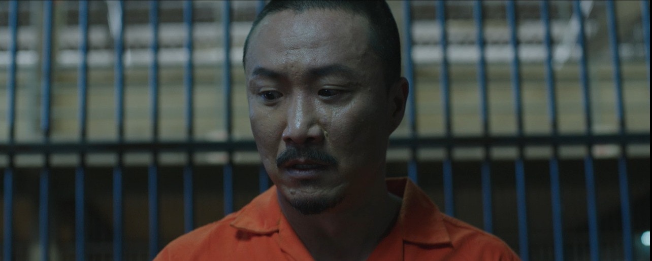 鄭中基回到監房時,室友姜皓文見到他行路拐下拐下,便知他受到凌辱。(《阿龍》影片截圖)