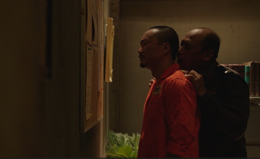 隨後該名懲教職員不單從後吻他。(《阿龍》影片截圖)