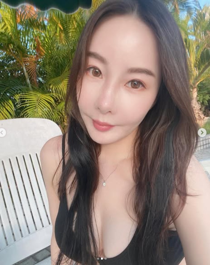 今日(7)陳薇在IG曝光近照,開了強勁濾鏡,騷白到反光美肌,未知是否老公視角。陳薇穿上一件黑色泳衣在泳池邊曬太陽,只拍上半身展露豐滿身材,惟其中一張相仍見到她縮肚腩。相片雖靚,見笑容欠奉,最後一張還見她扁扁嘴,留言:「我嘅me time 🏊🏻♀️」。。有網民留言:「❤️❤️❤️掂啊喂~」,陳薇亦有親回:「對4四(40歲)嚟講係咪😂😂😂」。