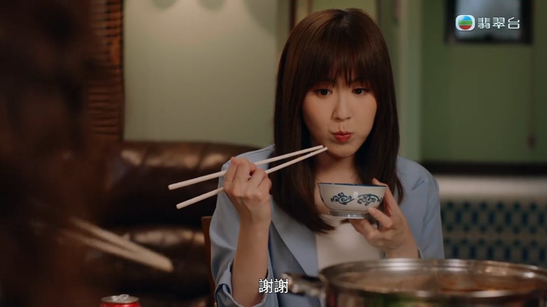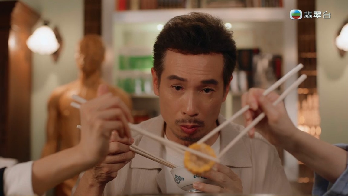最後劉佩玥夾起後放在陳豪的碗中,怎料陳豪一轉頭就把蝦轉到張曦雯的碗內。(《俠醫》截圖
