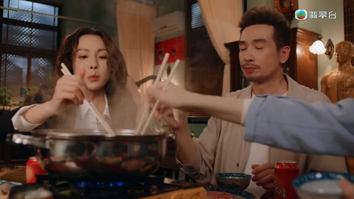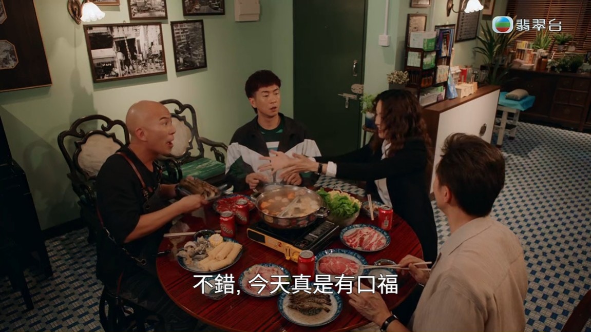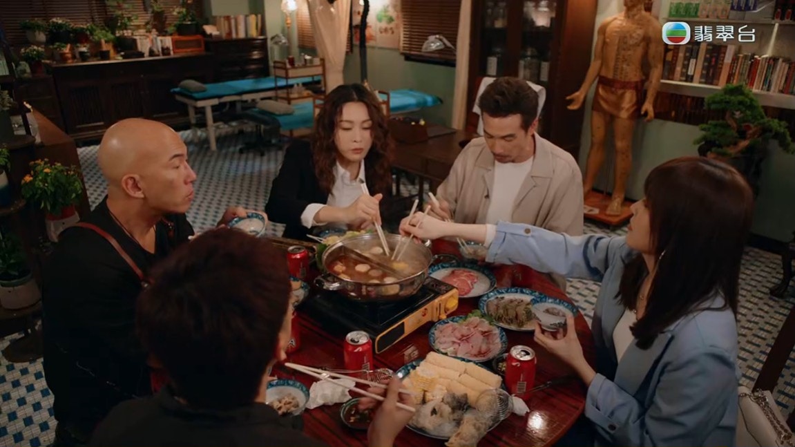 陳豪、張曦雯、馬貫東及彭廸安一起「打邊爐」,本身氣氛樂也融融。(《俠醫》截圖)