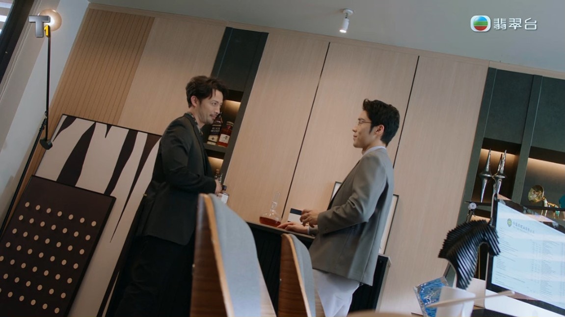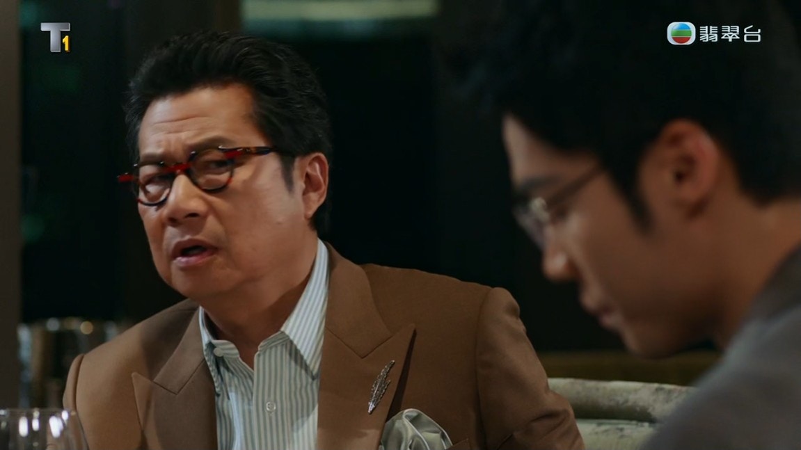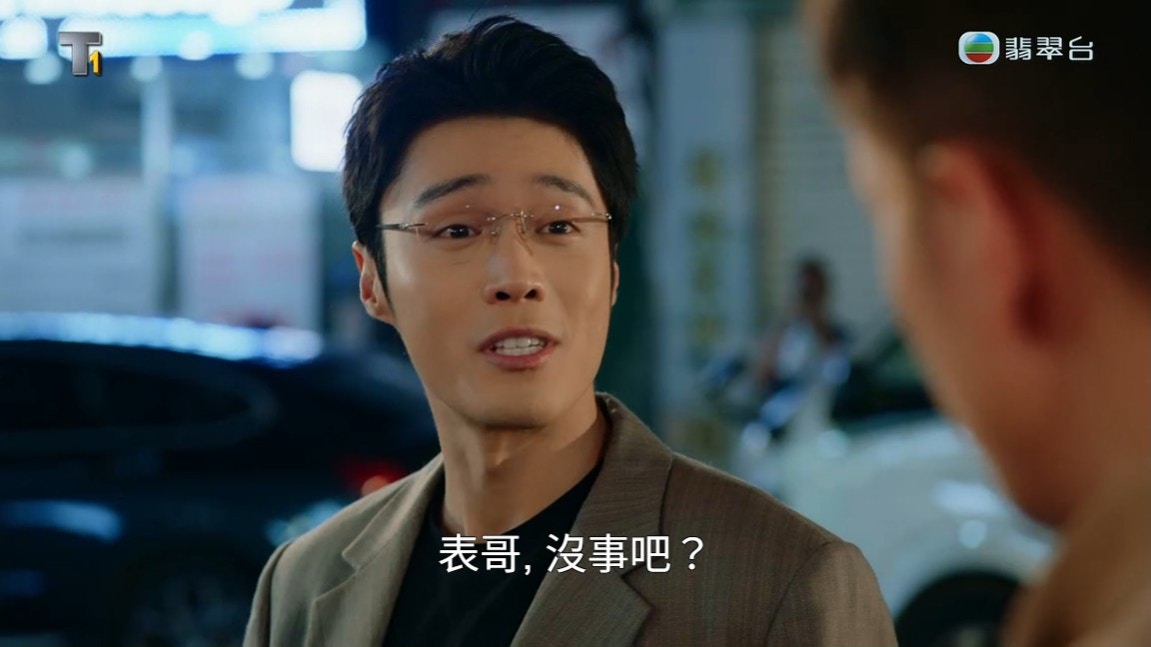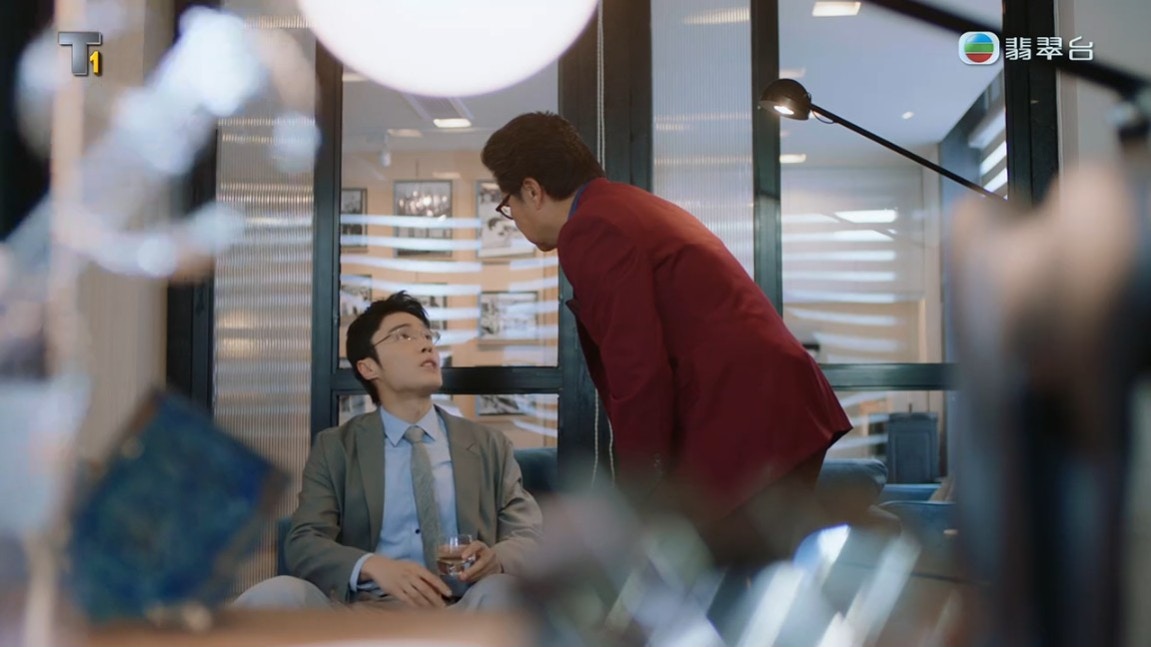 鄭子誠見到丁子朗與黎澤恩有交接,於是向丁子朗詢問黎澤恩到底是誰,結果被丁子朗忽悠過去。(《俠醫》截圖)