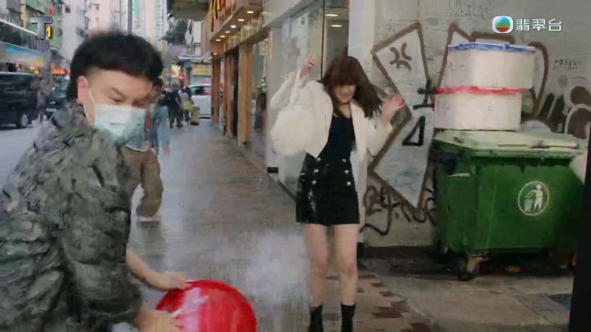 黎澤恩的手下去醫館搞破壞,劉佩玥保護張曦雯而推開其,但就被水潑到全身濕透。(《俠醫》截圖)