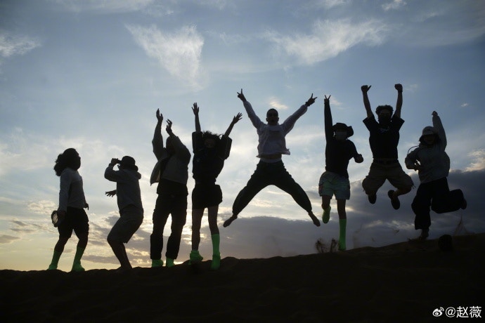 日前趙薇在微博分享了多張到新疆旅遊的照片,並留言寫道:「巴音布魯克沒有海🌄😊👀🚗🌌 」。相中可見新疆的日夜美景,除了有跟7位朋友在日落前跳起的背影照之外,還有披頭散髮的自拍照,明顯看到趙薇的臉消瘦了不少。雖然近日被內地法院凍結股權3年,涉及款項1600萬元人民幣(約1749萬港元),趙薇似乎心情沒有被影響,玩得相當盡興。