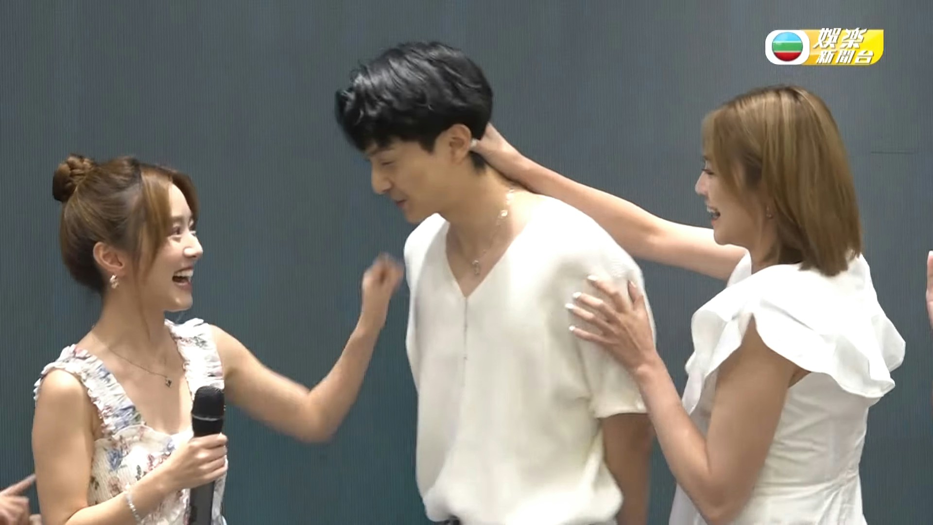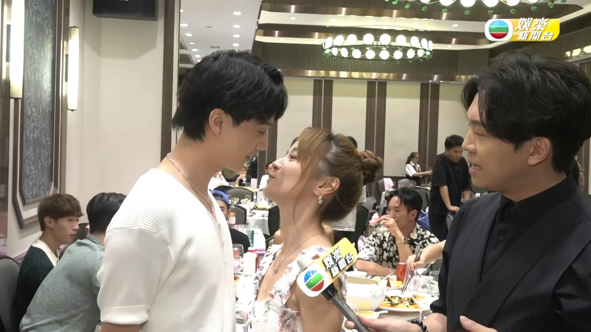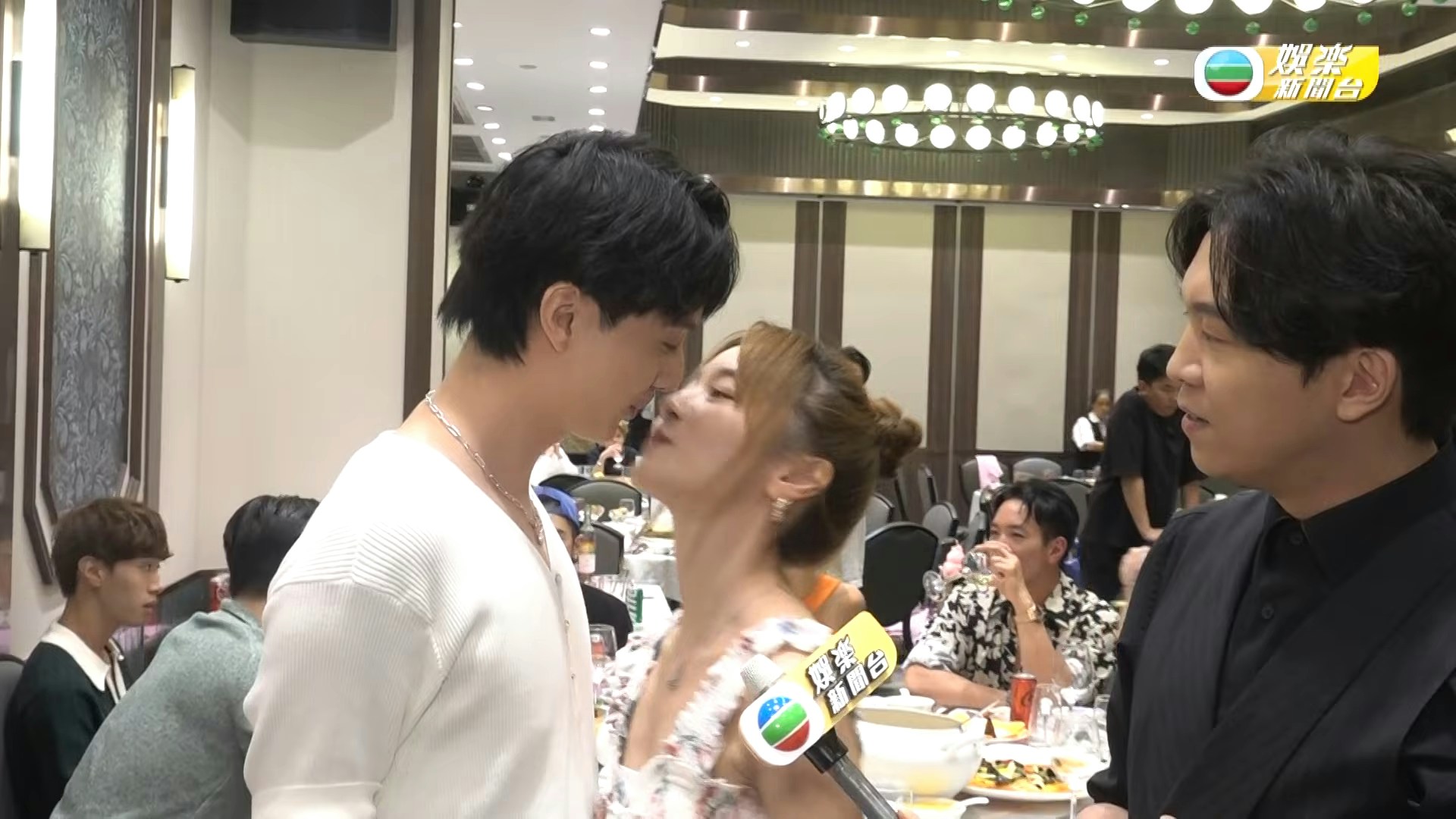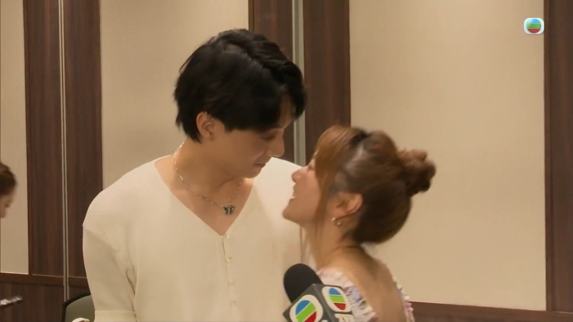 羅毓儀及林俊其除了在分享感想環節時親親外,連做訪問都要親不停。(影片截圖)