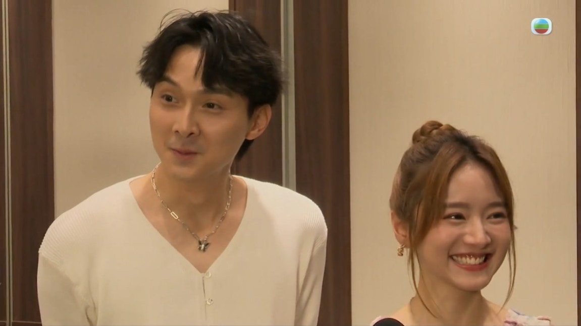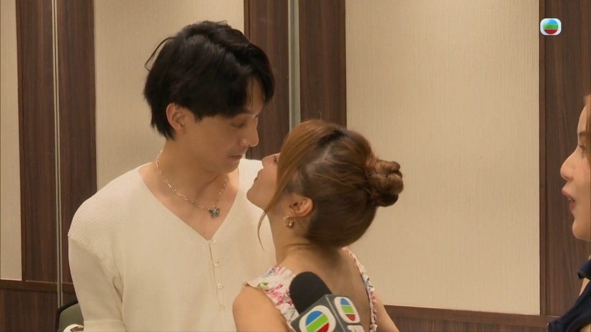 羅毓儀在接受《東張》訪問時亦主動親吻林俊其。(影片截圖)