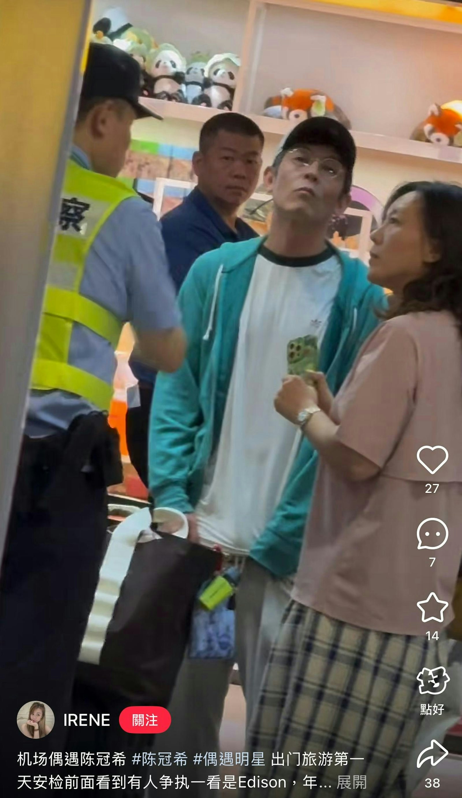 早前陳冠希在機場疑因被後面的人推了一下發火報警。(小紅書)