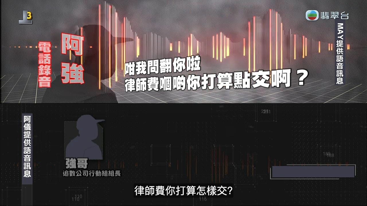 之後,追數公司又指翌日會安排交收,怎料,又指款項被警方扣起,又指要安排裝修公司及律師樓發出裝修證明,以證明款項正常向警方才能取回。《東張西望》表示,事件如同早幾集播出的騙案一樣,亦發現語音訊息中的男人聲十分相似,懷疑是同一班人所為。