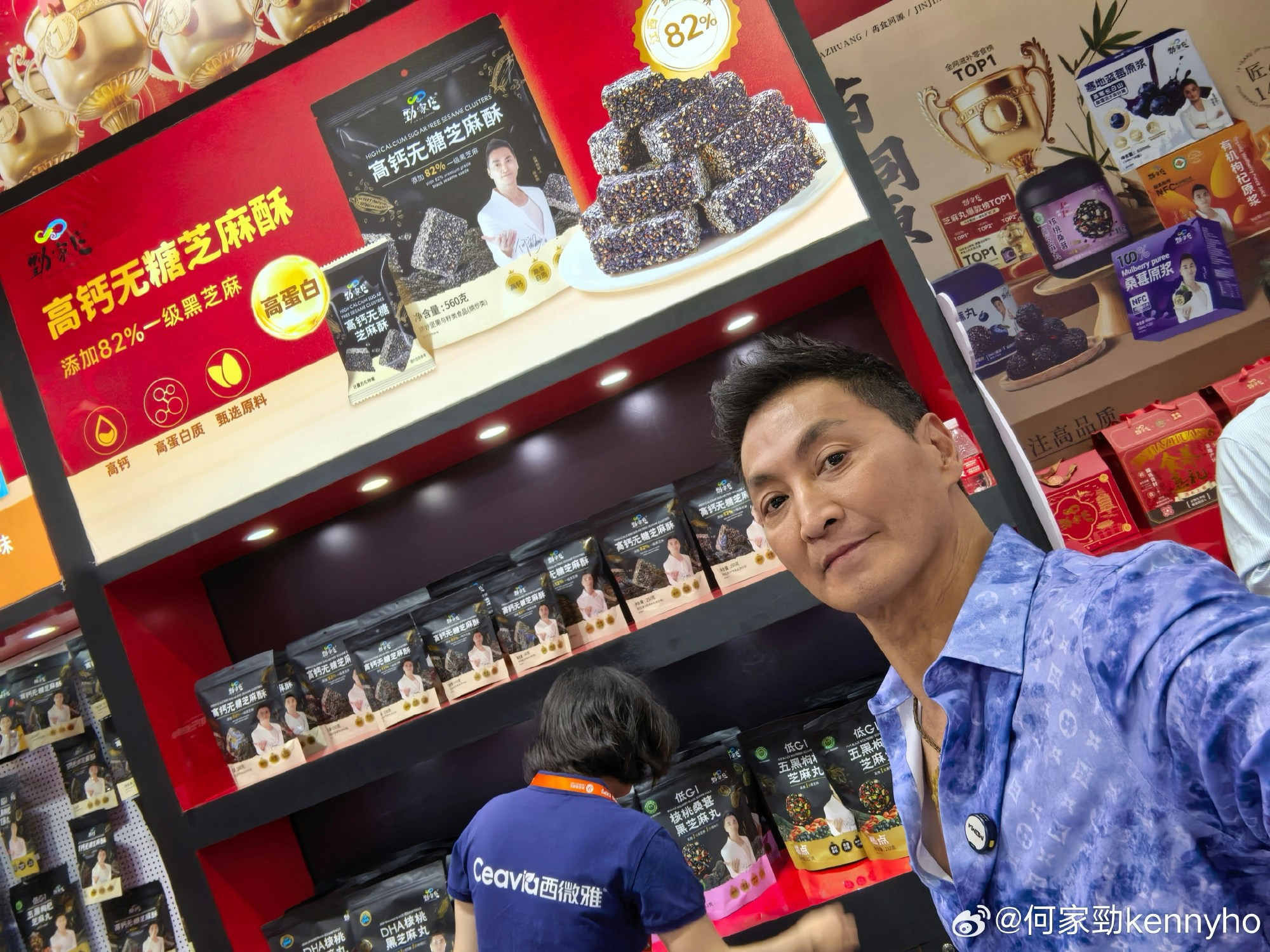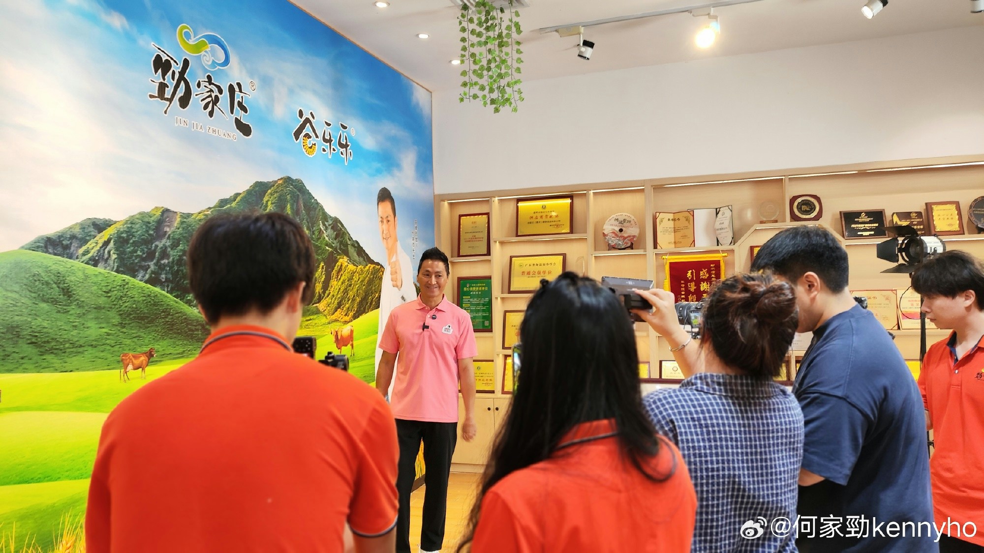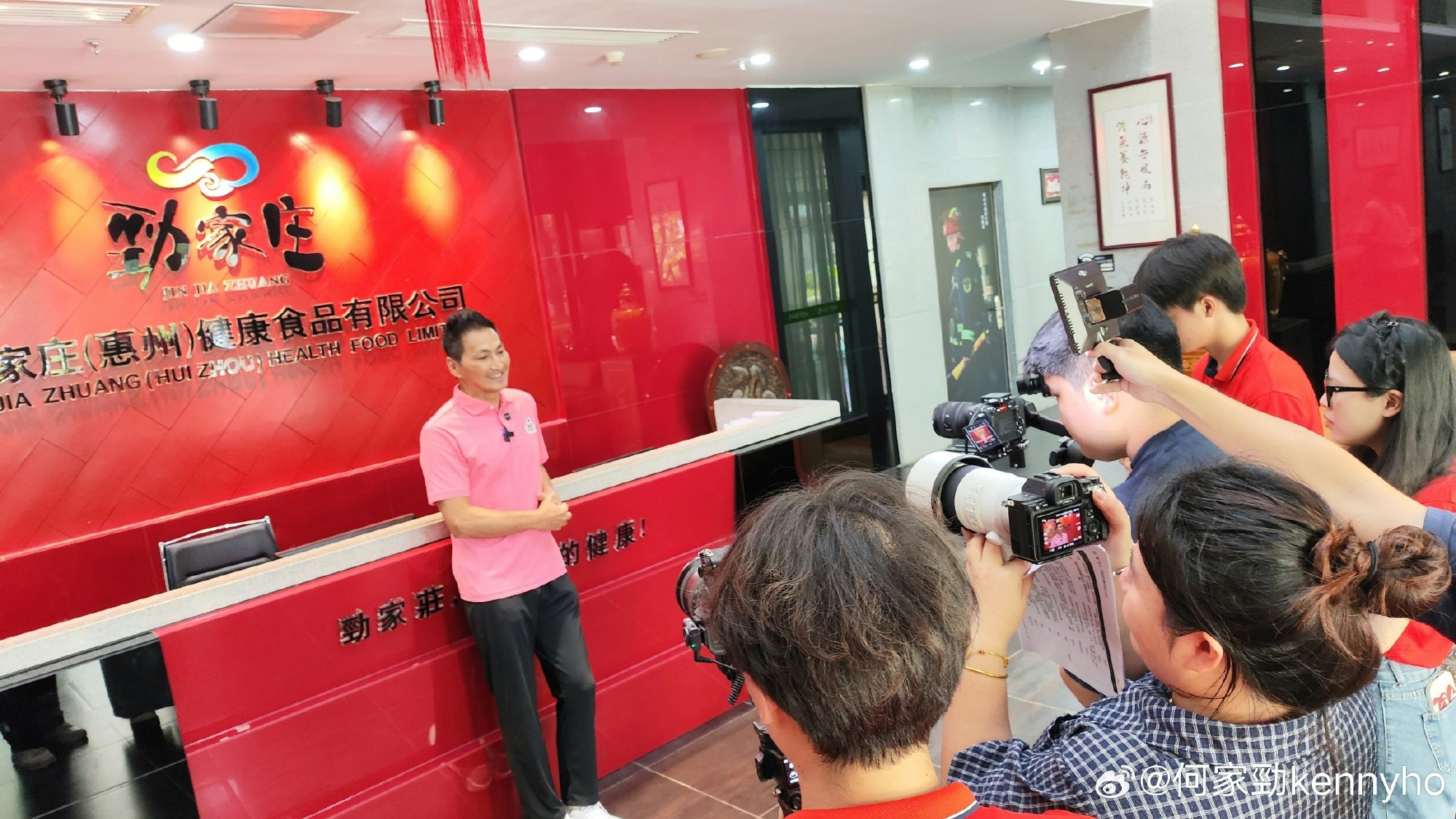 何家勁寫道:「惠州政法委平安惠州宣傳片拍攝中。。。」相中所見,何家勁在自家工廠拍攝宣傳片,保養得宜的他依然大隻有型,吸引不少人圍觀!何家勁在2011年投資3000萬港元與好友一起創辦以五穀綠色生態的食品生產基地「勁家莊」,之後就定居內地,專心經營健康食品生意,經過多年來的打拼,產品銷售理想,生意亦已上軌道,而何家勁在發展食品業的同時,還將工廠打造成旅遊景點,「勁家莊」被評為「國家AAA級旅遊景區」,每年都有不少遊客到訪參觀。近年何家勁亦積極直播帶貨,拍片宣傳自家產品等等,相當成功!