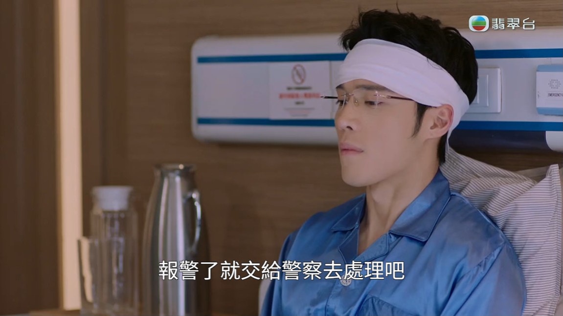 丁子朗在江欣燕離開病房後馬上變回「奸樣」,未知他在盤算什麼。(《俠醫》截圖)