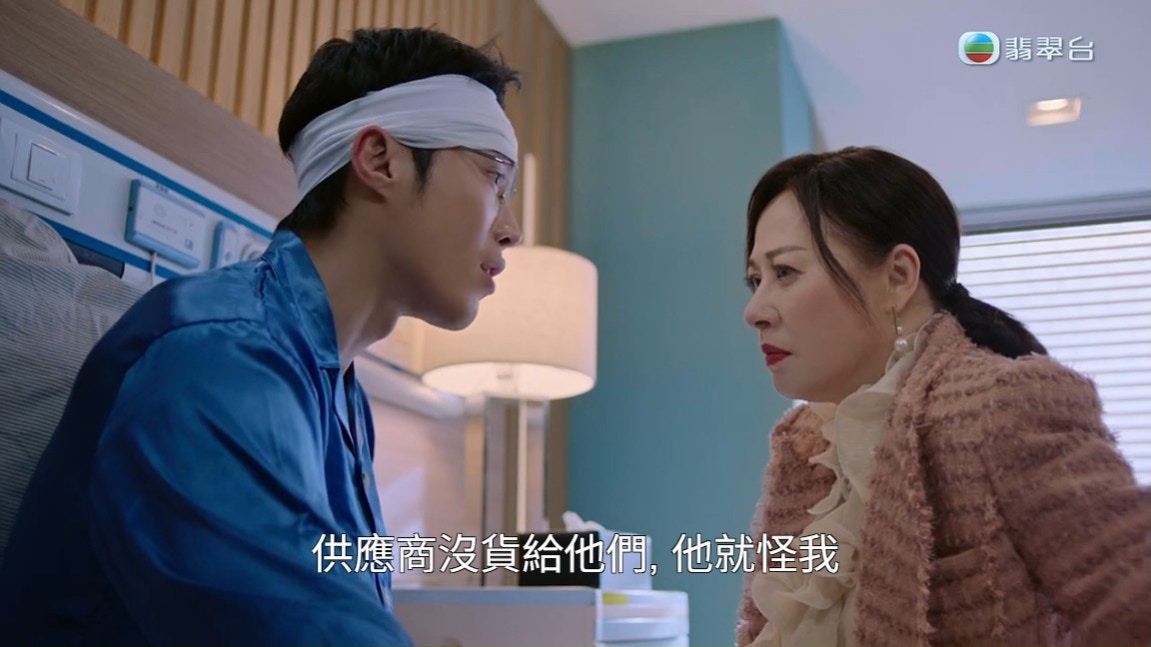丁子朗一見到媽媽江欣燕馬上變得弱者,指是馬貫東把他打成這樣。(《俠醫》截圖)