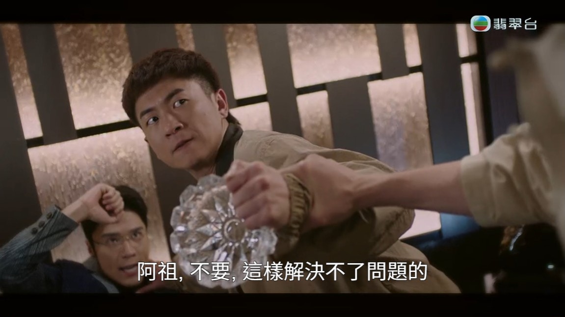 當然衝動的馬貫東受不住丁子朗的言語挑釁,最後拿著煙灰缸衝上前想打在丁子朗的頭上。(《俠醫》截圖)