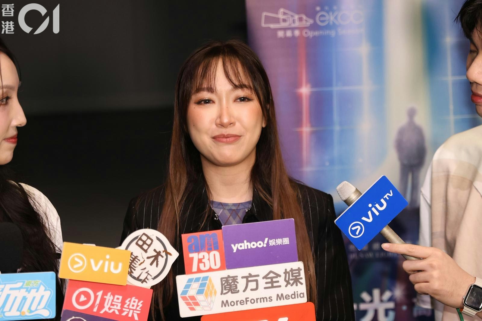 葉巧琳今日現身香港東九文化中心出席有份參演原創粵語音樂劇《一束光——高錕的記憶》記者會。(陳順禎攝)