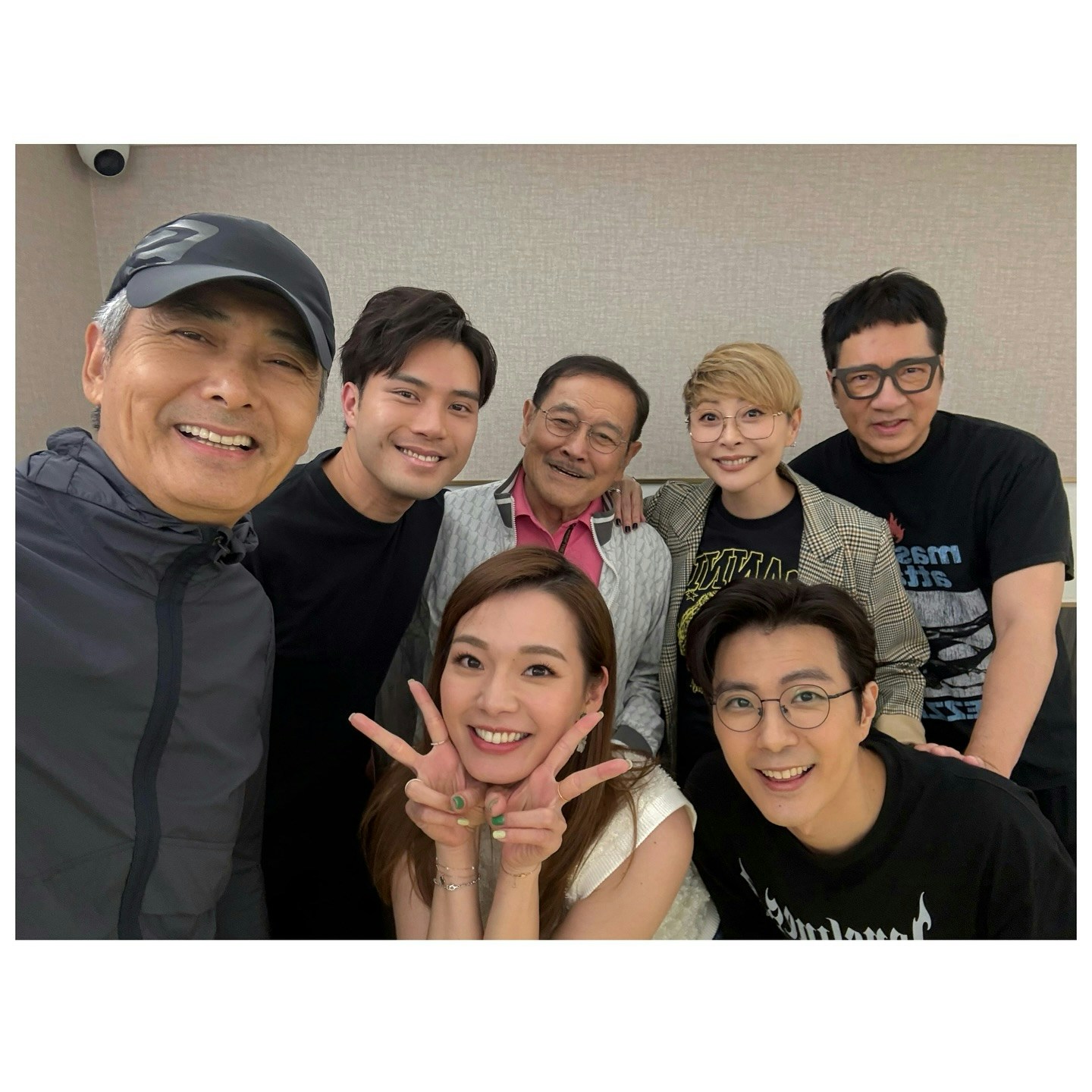 周潤發與《愛.回家》的演員們,包括陳浚霆、劉丹、湯盈盈、單立文、張景淳、呂慧儀合照。(IG圖片)