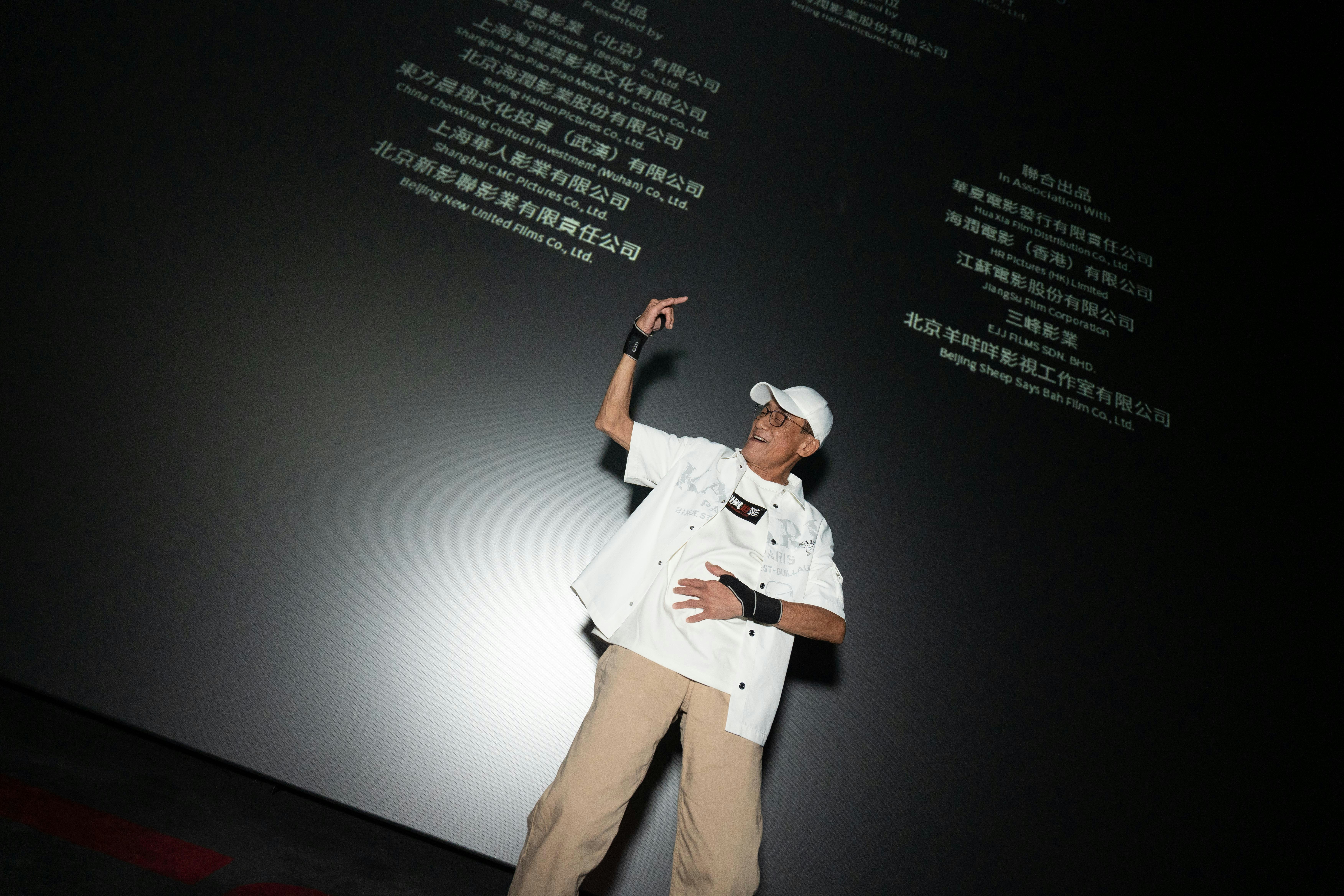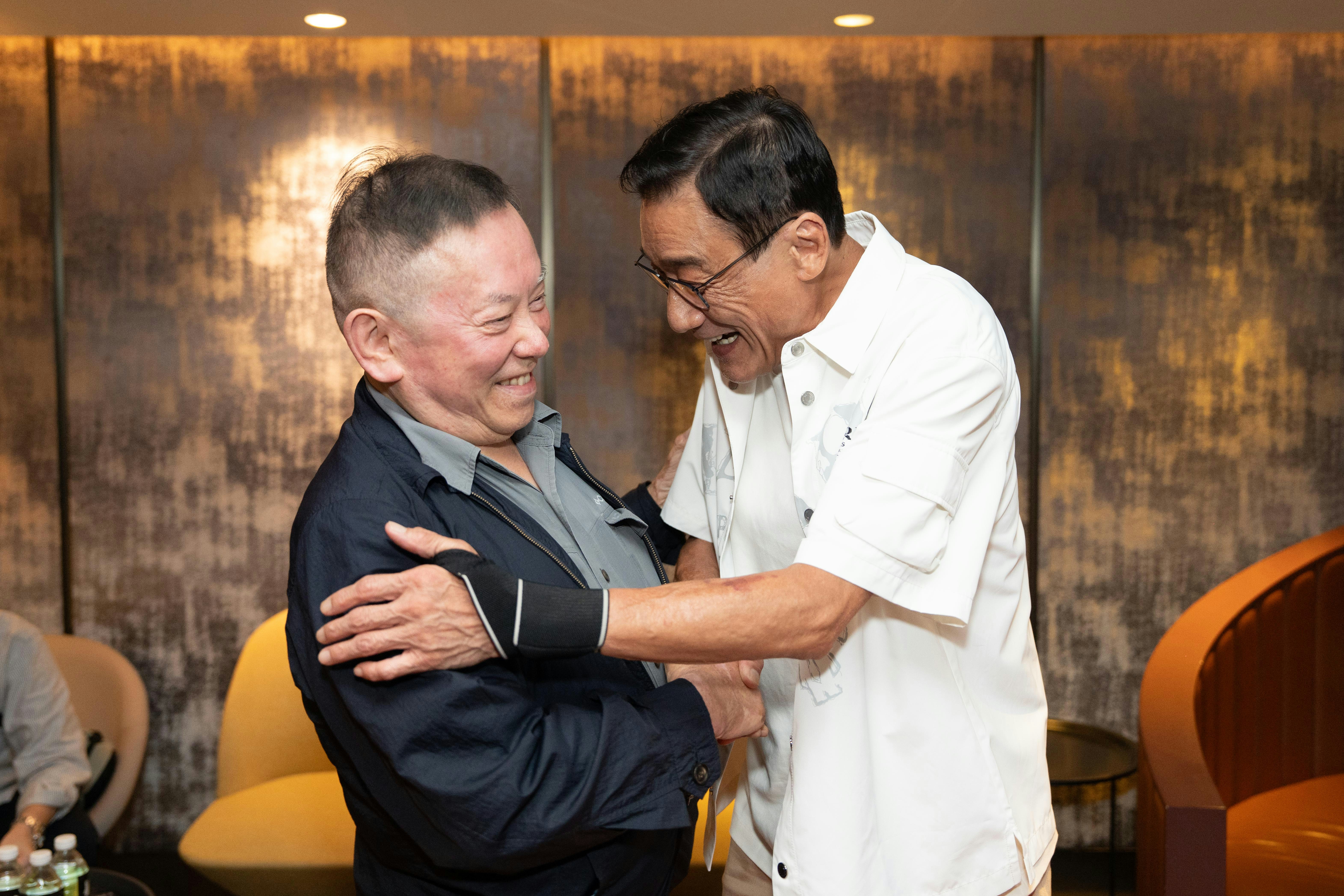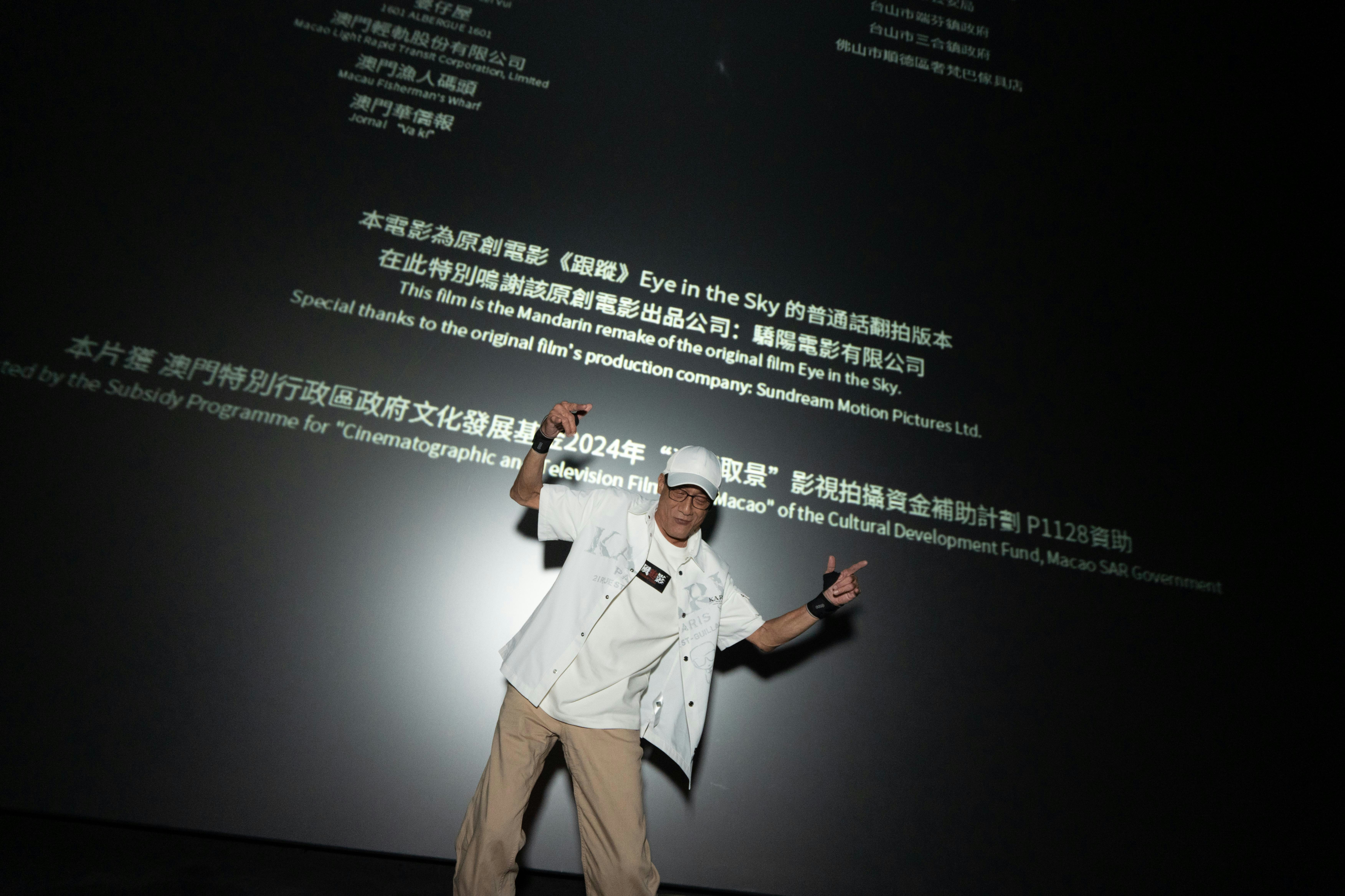近期在兩部電影同時上映的姜皓文(黑哥),特別抽空到場支持《捕風追影》,並與家輝哥擁抱問好,他倆對上一次見面,已是四年前宣傳電影《金錢帝國:追虎擒龍》,黑哥想不想效法家輝哥,像《捕風追影》一樣挑戰激烈的動作場面?黑哥說:「我一路舉手要打,係佢哋信我唔過,所以唔俾我打!」家輝哥展示雙手護腕,幽默回應:「你睇吓,就係佢哋咁信得過我,所以要戴護腕!(真係拍戲受傷嘅後遺症?)唔係,係因為要抱兩個孫,因為佢哋成日會『典』!」在《捕風追影》飾演警隊高層的黃錦燊,亦有出席優先場,終於與戲中的大賊「影子」家輝哥同場現身,燊哥說:「導演(楊子)跟我說,現正籌備續集,希望我們再有合作機會!」