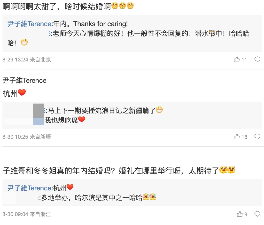 尹子維親自爆今年會在杭州辦婚禮。(微博圖片)
