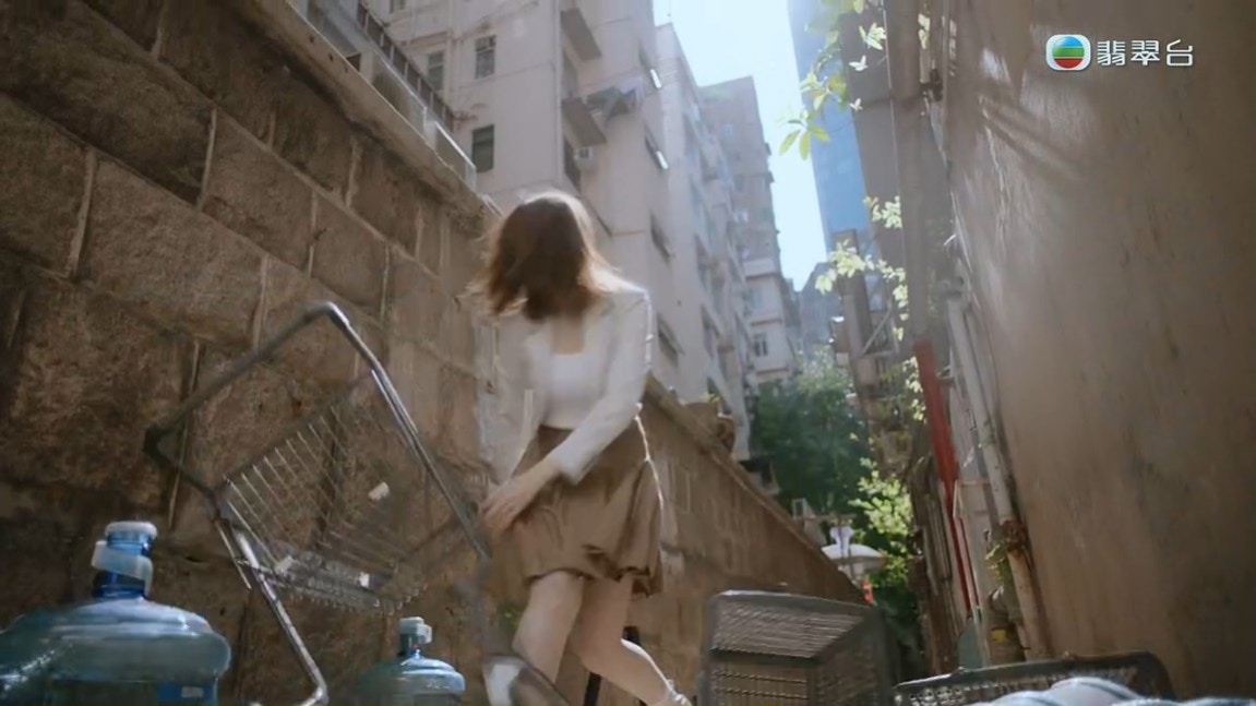 劉佩玥在後巷對著雜物拳打腳踢。(《俠醫》截圖)