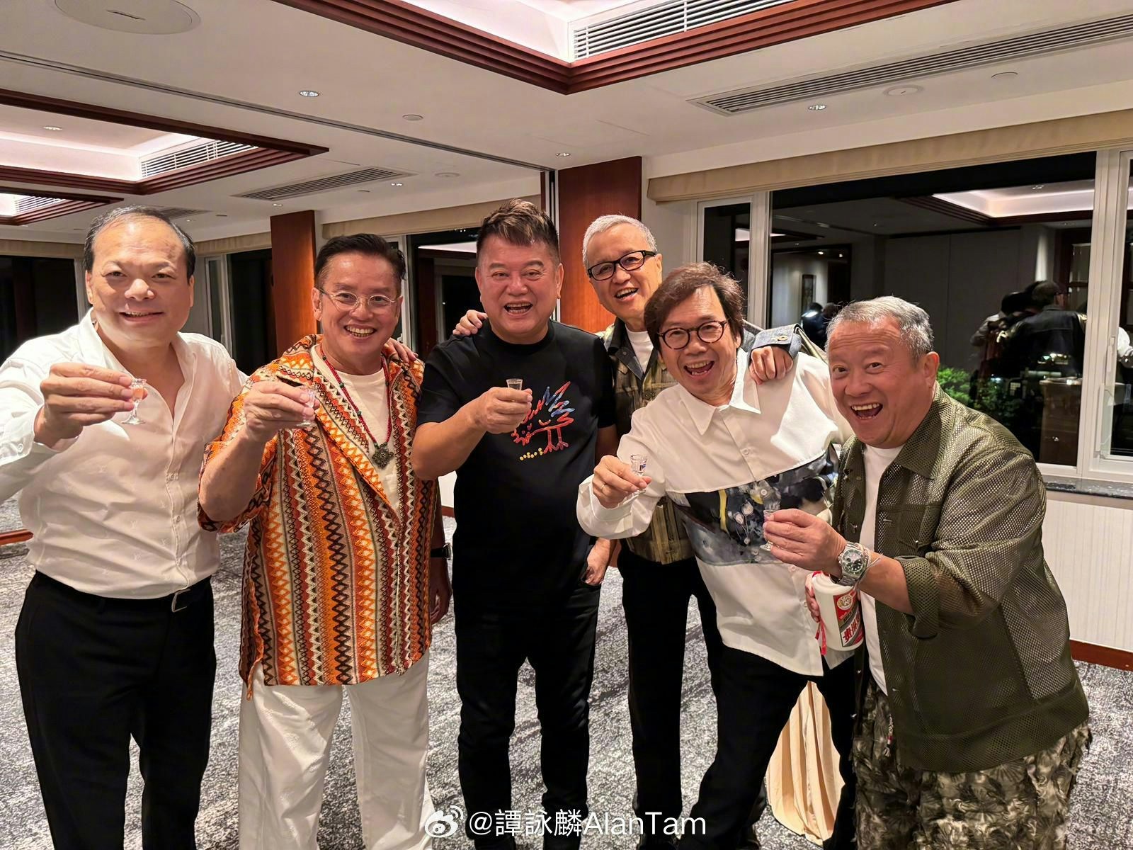阿叻陳百祥出席譚詠麟生日派對。(譚詠麟微博)