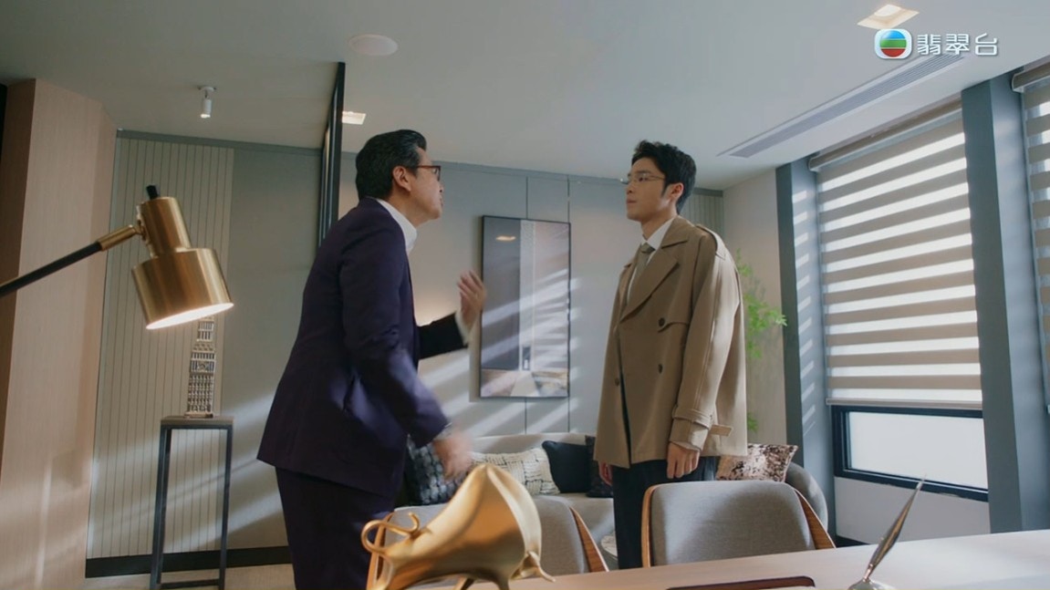 因為凌為民(陳豪 飾)計劃以六千萬元購入騎樓,但他向銀行申請貸款時卻遭到拒絕,陷入了資金困境。母親鄧淑歡(盧宛茵 飾)得知了陳豪的困境,所以想動用自己在「任遠藥廠」的股東分紅來完成他的意願。盧宛茵向鄭子誠提出分紅時,丁子朗就開始他的陰謀,開始向劉佩玥「埋手」,插手這一單交易,試圖從中獲取利益。丁子朗擁著劉佩玥從房中走出來時,即被鄭子誠見到:「你呢個鹹濕仔,嗰頭扮孝順仔,轉個頭食我條女?」丁子朗不忿氣說:「我大把女啦,使食你嗰條?」