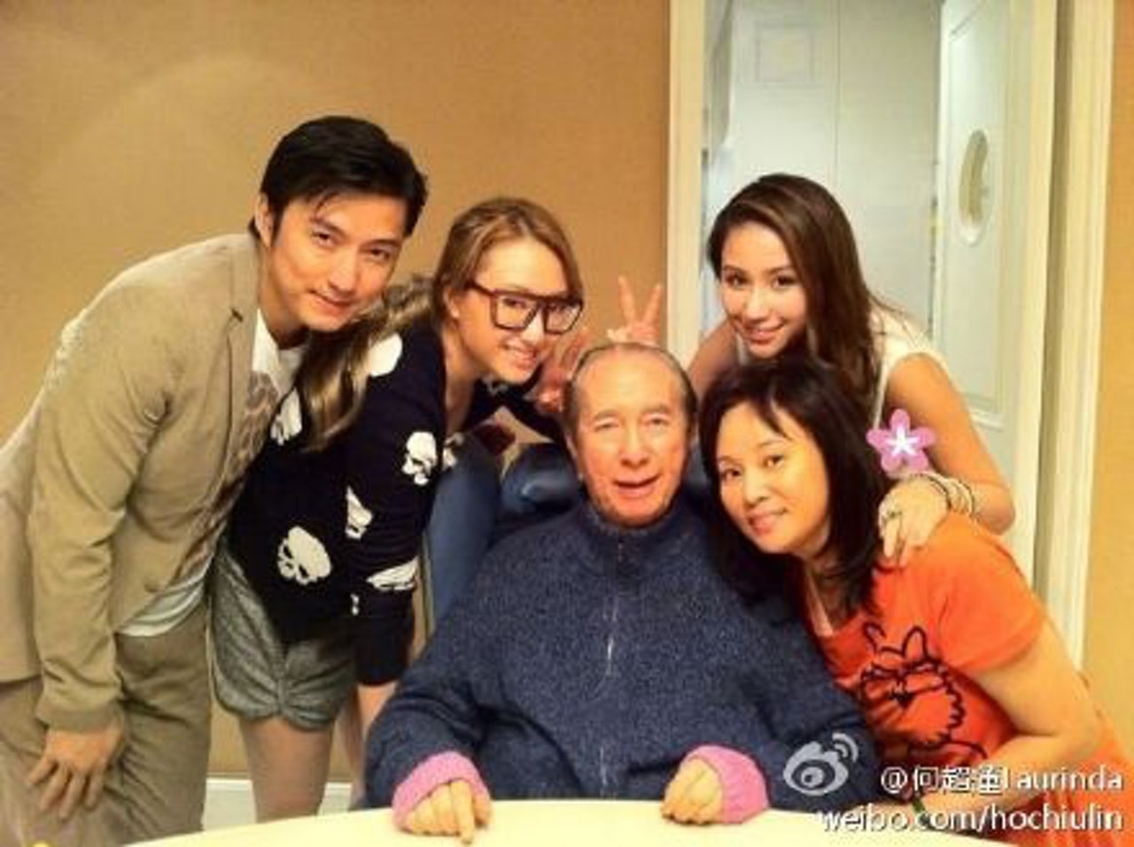 陳山聰與何超雲見賭王何鴻燊。(微博圖片)