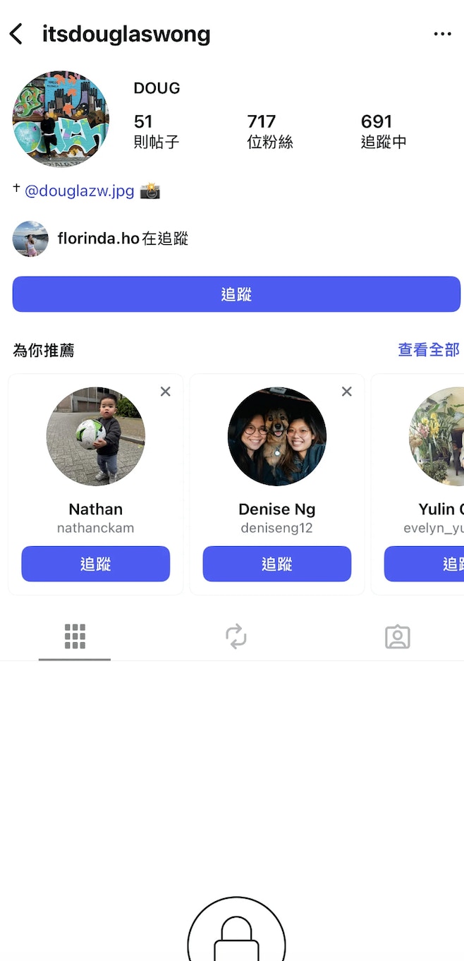 何超雲追蹤疑為Douglas的IG帳戶。(IG圖片)