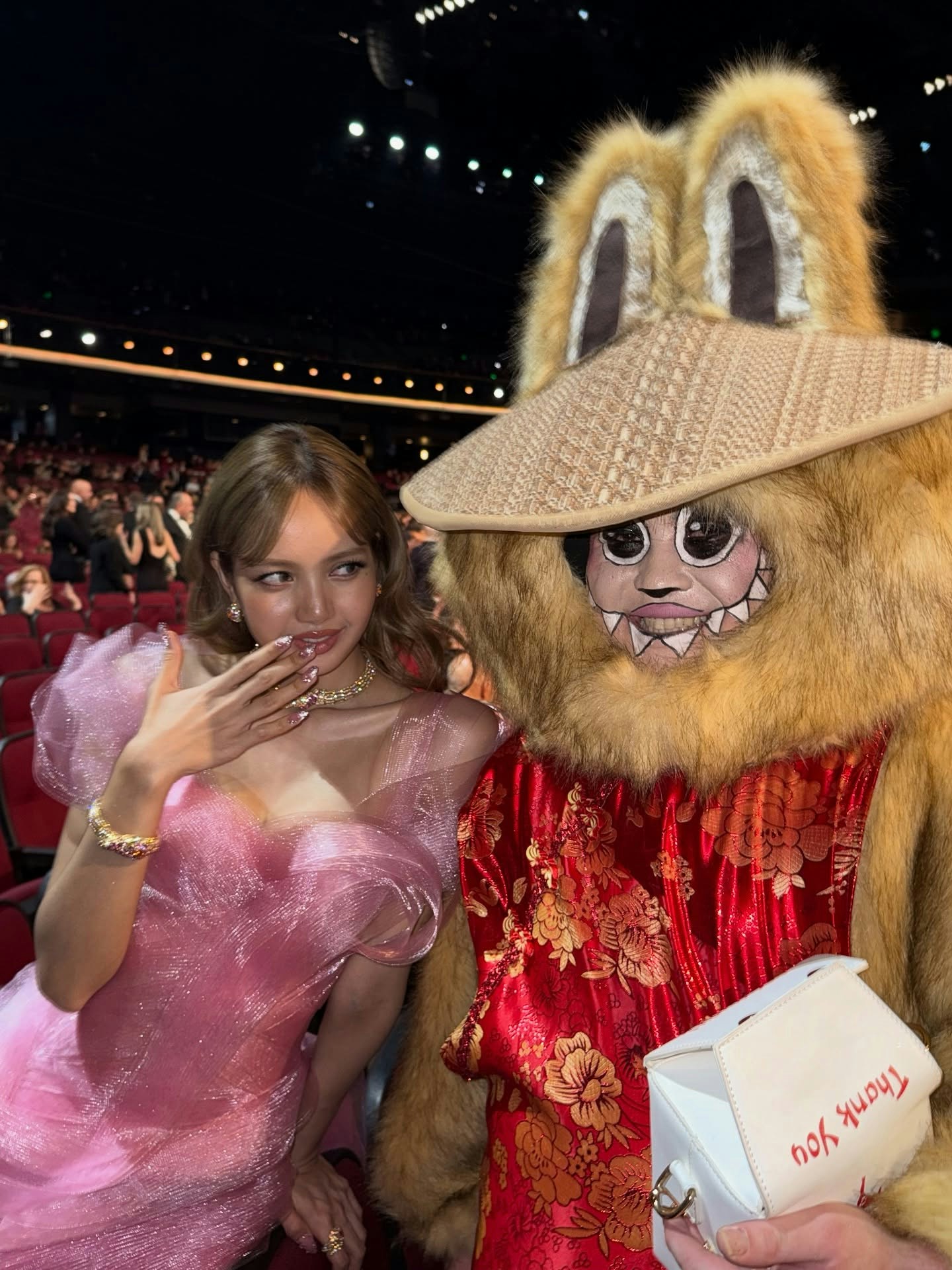 她因為喜歡拉布布(Labubu)掀起全球拉布布熱潮,艾美獎現場驚見真人版拉布布。