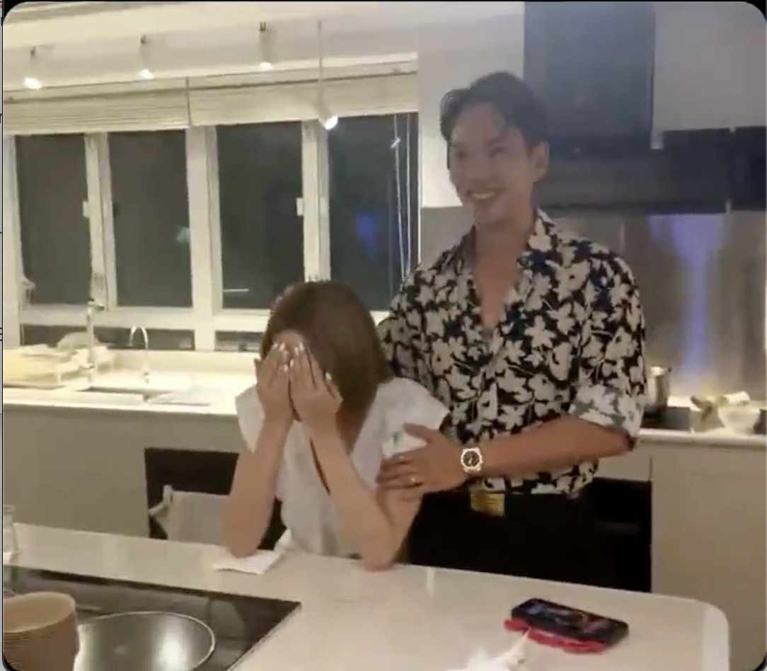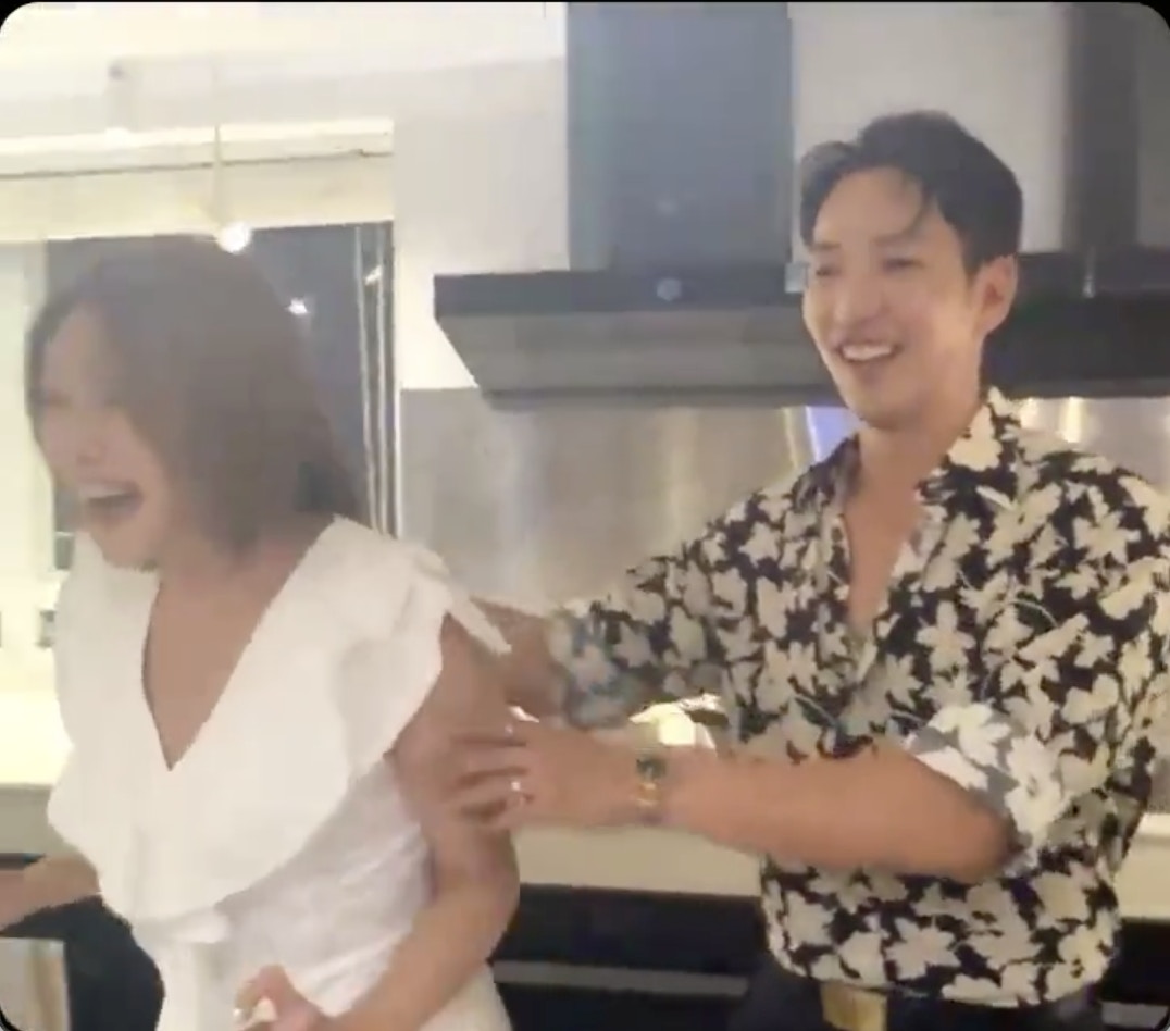 在眾人推波助瀾下,Matthew錫了關嘉敏面珠一啖!(IG@maggiemanhau)