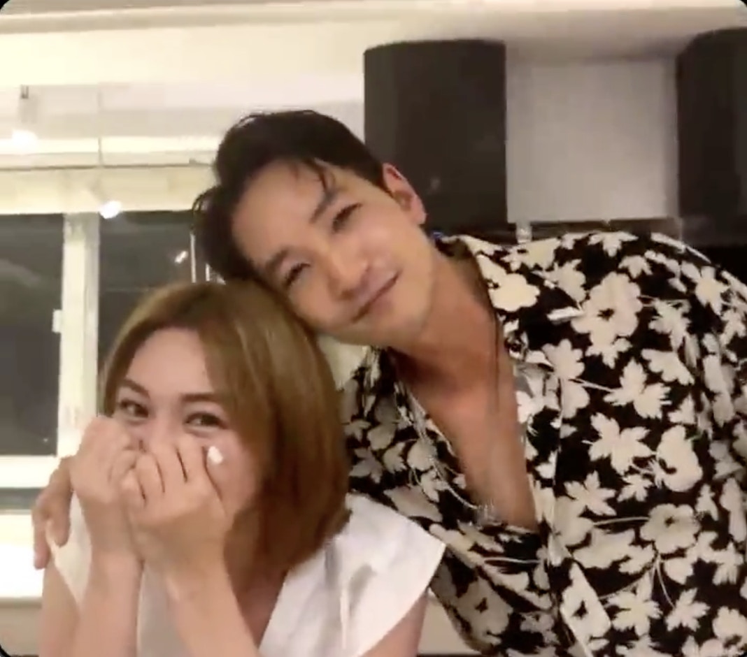 大方的Matthew試圖捉住她安慰,關嘉敏全程表現靦腆,更直呼:「我怕醜呀!」(IG@maggiemanhau)