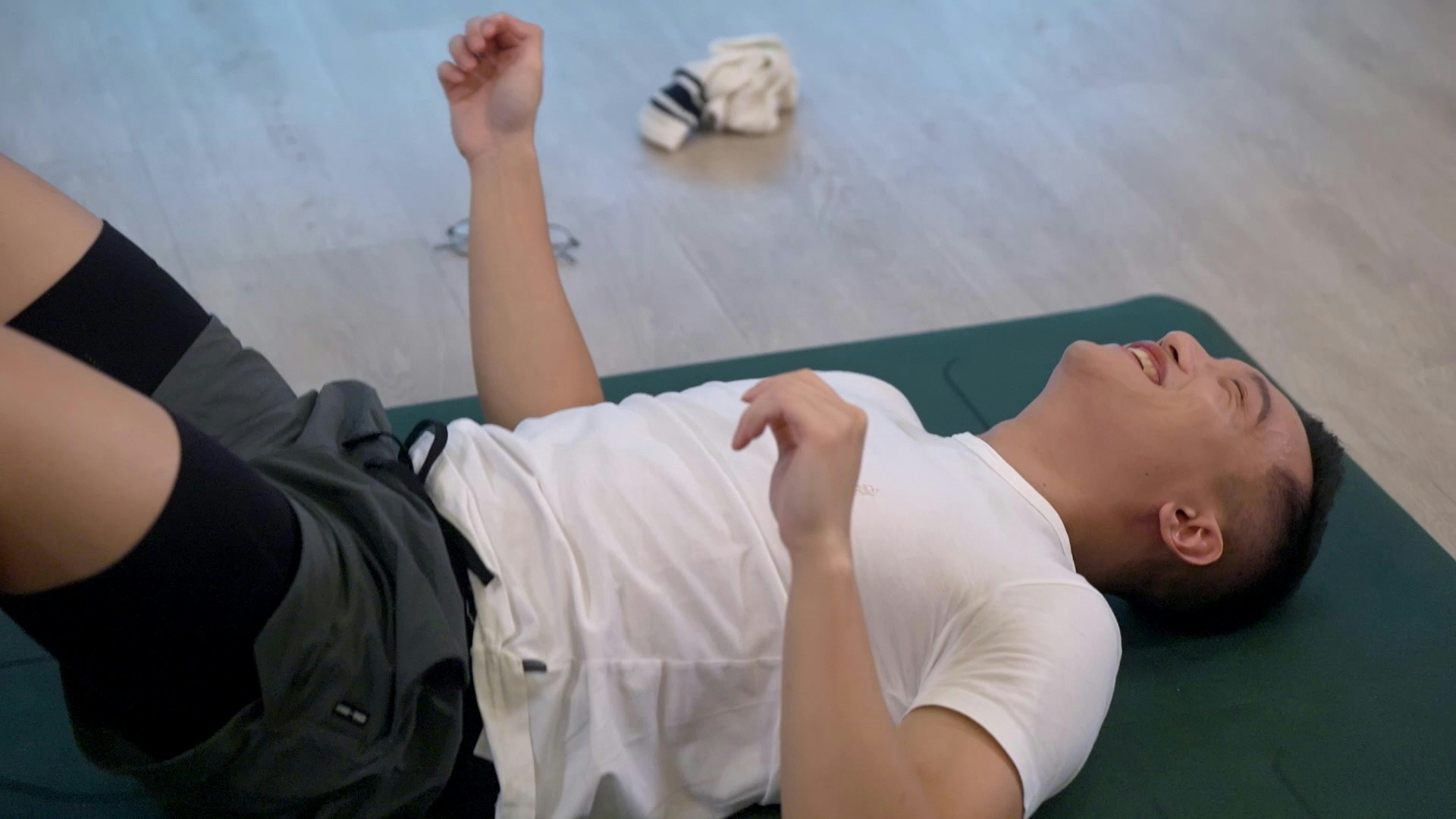 Matt一知個約會竟然係玩雙人瑜伽,即刻揼晒心口咁嘅款。(官方提供)