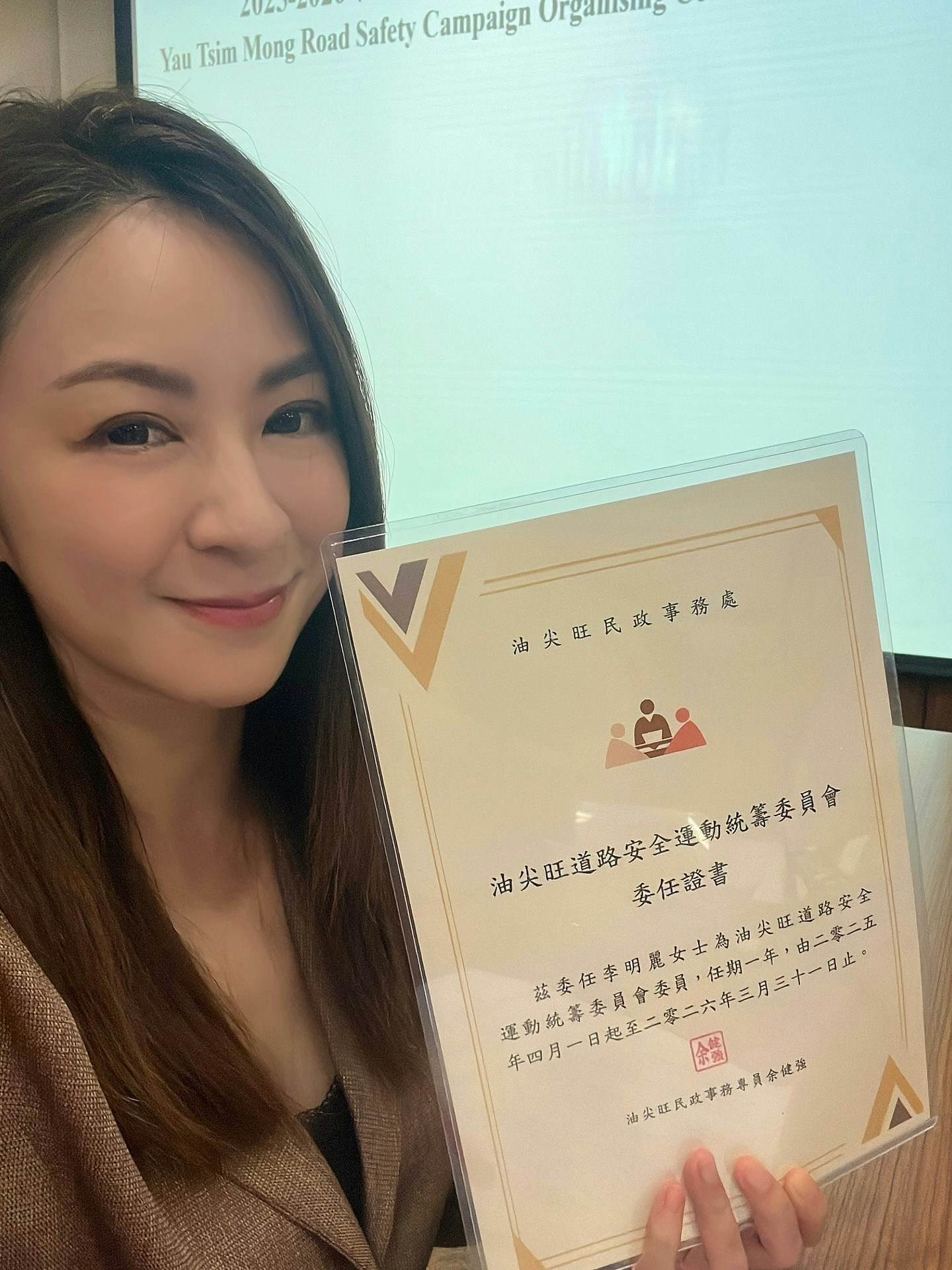 李焯寧穿上制服後非常有型,她稱:「油尖旺道路安全運動統籌委員會委員參觀拜訪西九龍交通總部,重新鞏固好多新的道路安全知識,例如現在叫9駕不是醉駕,叫藥駕不是du駕等等,以及瞭解交通部科技及裝備👍當聽到油尖旺區是全港交通意外事故下跌最多的地區非常之感恩,證明交通安全教育在油尖旺得到顯著的成績。 這次收穫滿滿!尤其是可以坐上鐵馬還可以穿員警制服簡直夢寐以求啊😍 臥底這麼多年我終於要爆啦:其實我是員警🤫 本人覺得我型到爆🤣」