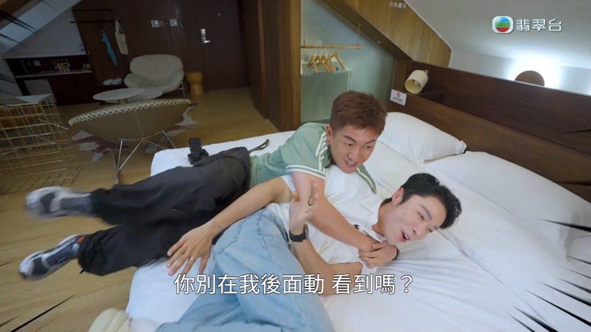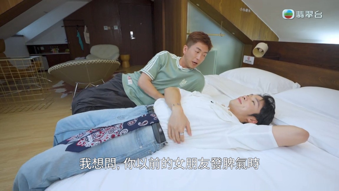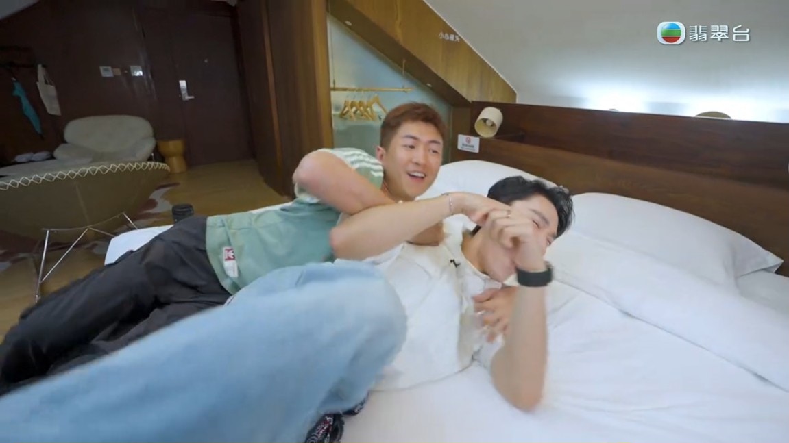 丁子朗、陳懿德及馬貫東下車後去了山海關,勇闖「天下第一關」,之後就去了秦皇島的阿那亞。丁子朗與馬貫東在當中一間酒店房時竟然發生了一些刺激的事,馬貫東躺在床上問丁子朗:「你以前啲女朋友發脾氣會點鬧你?最衰嗰句。」當丁子朗想答馬貫東時,馬貫東則叫他不要答:「唔好講,我哋望出個窗。」丁子朗即時做出想吐的動作,卻被馬貫東一下子從後抱著他,丁子朗笑指:「原來你係霸道總裁Type。」但馬貫東繼續抱著他在後面不停郁動,嚇到丁子朗大叫:「你唔好喺我後面郁,你唔好喺我後面咁激動先!」認真讓人難以接受,8點半的劇集《俠醫》才見到二人「打生打死」,10點半的綜藝節目就「攬頭攬頸」。