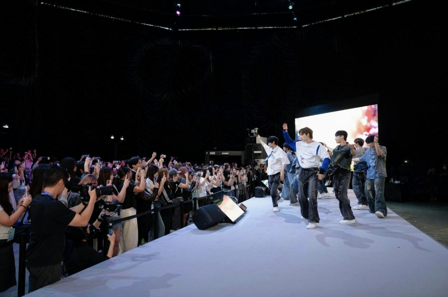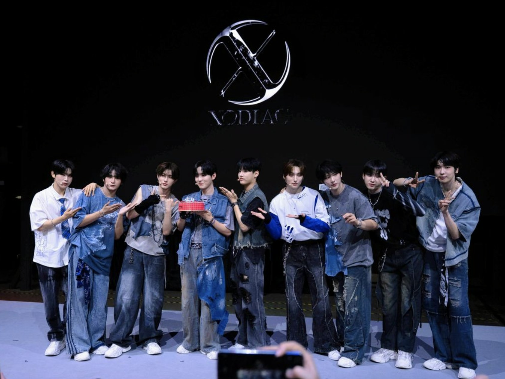 XODIAC成員們對Al技術的應用感到驚嘆,認為它能實現許多現實中難以辦到的創意,並十分滿足能夠將Al融人作品為粉絲送上驚喜。XODIAC在舞合上獻唱了四首歌曲,精湛的歌藝和I充滿活力的舞步譏現場粉絲為之瘋狂,近距離的互動更是讓尖叫聲不斷。當日恰逢成員HYUNSIK的生日,其他成員特意準備了生日蛋糕,在舞台上為他慶生。