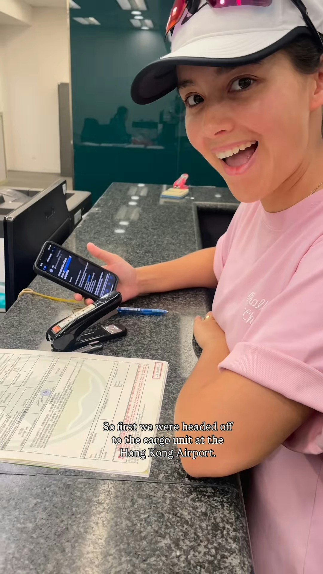 謝嘉怡親自到機場接狗仔。(影片截圖)