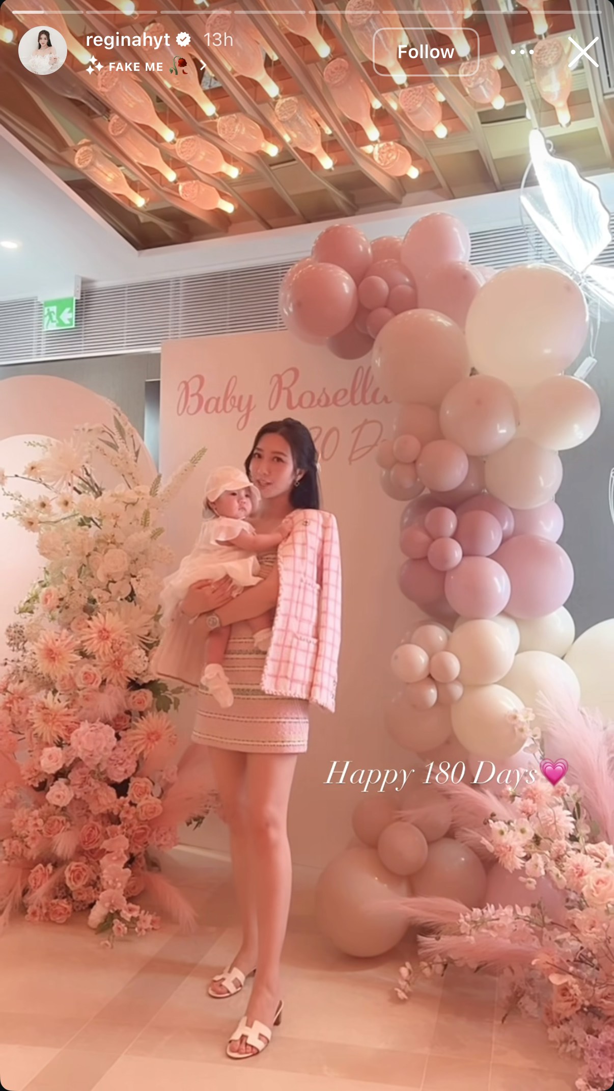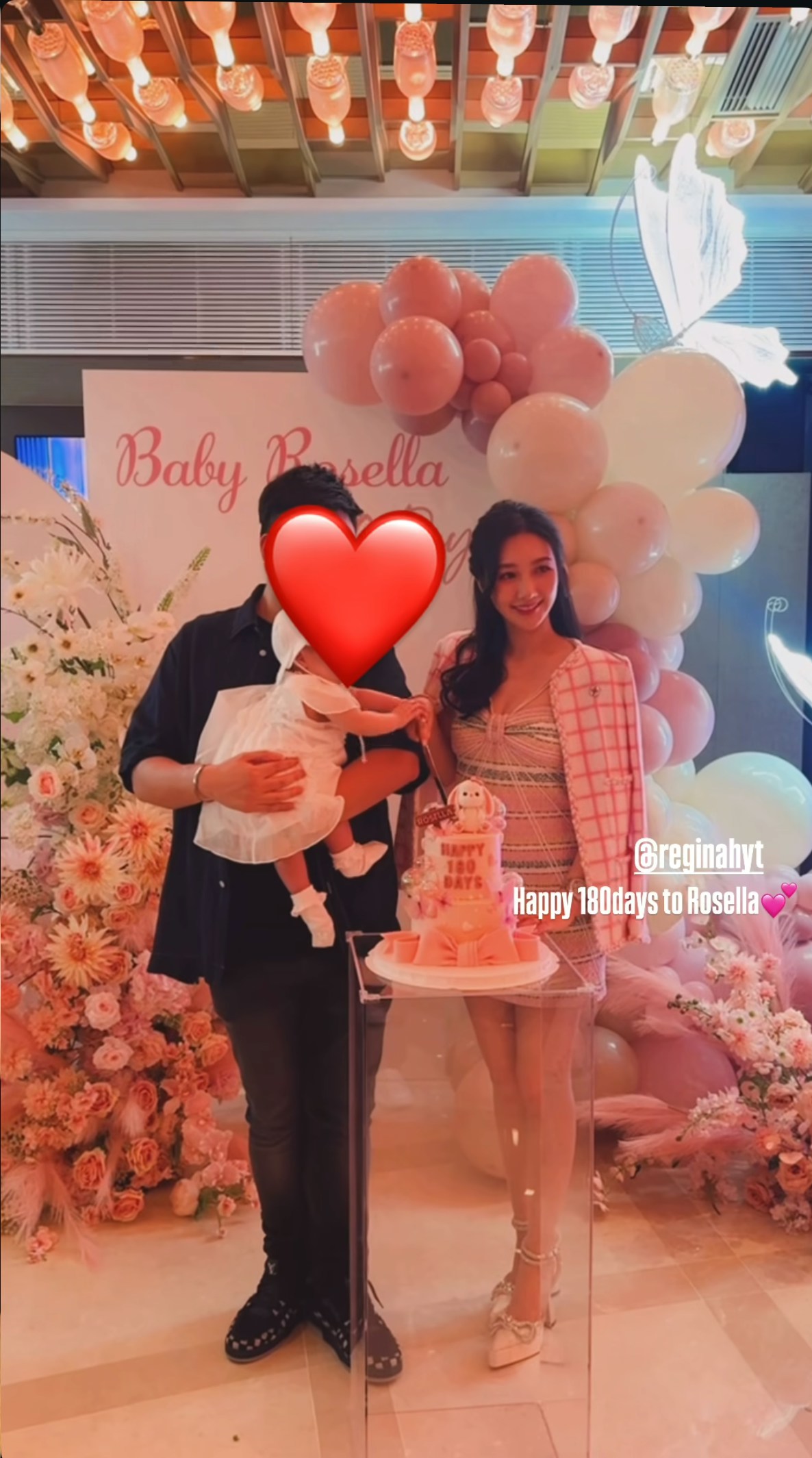 日前何依婷與老公就為愛女舉行「180日宴」,場內布置以粉紅色為主,有粉紅色花、氣球等等。(IG圖片)