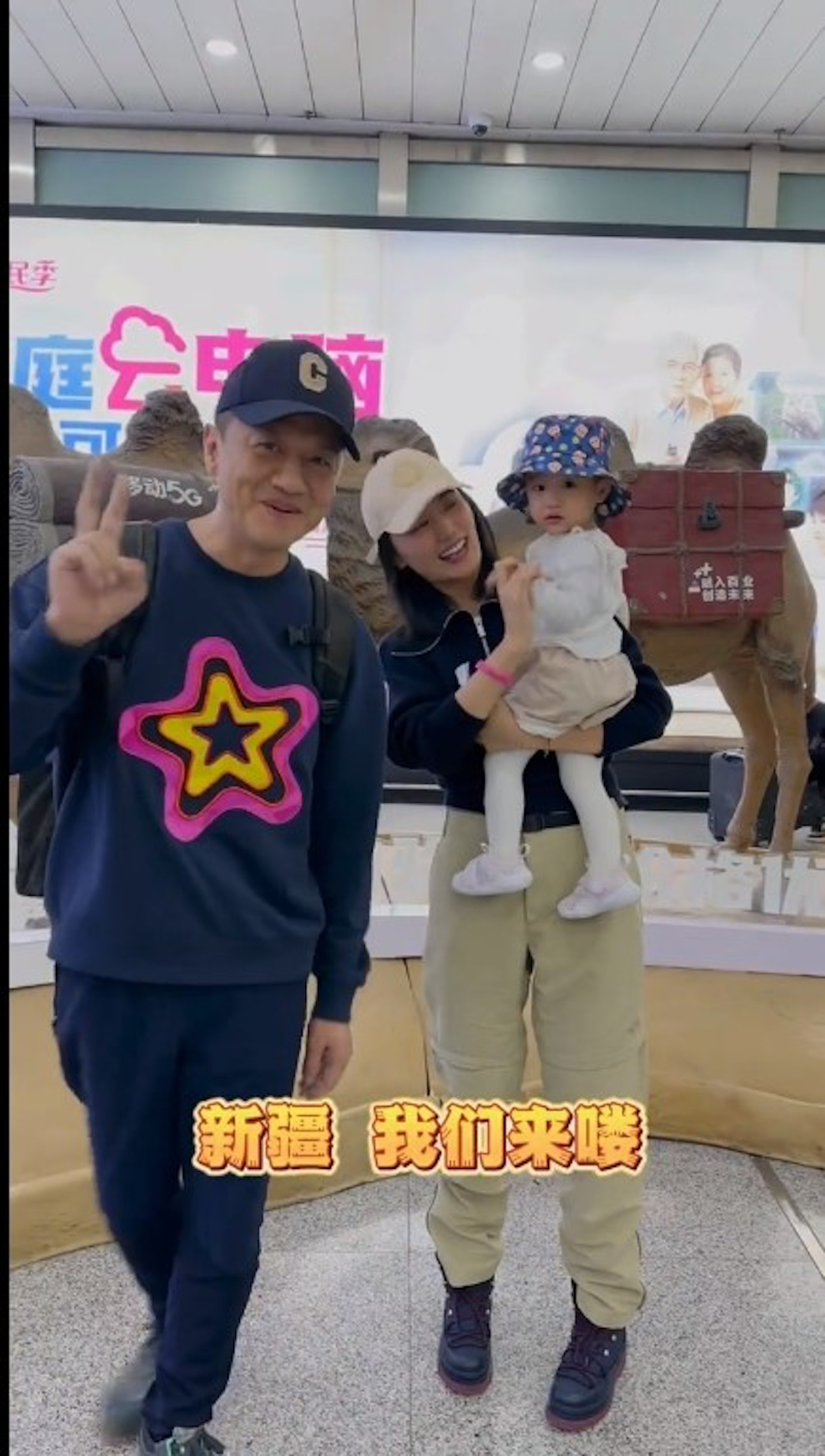 李亞鵬臉上皺紋明顯,尤其是魚尾紋及「樹根頸」,與老婆站在一起對比十分大,蒼老不少,令人感覺仿如祖孫三代同堂。(影片截圖)